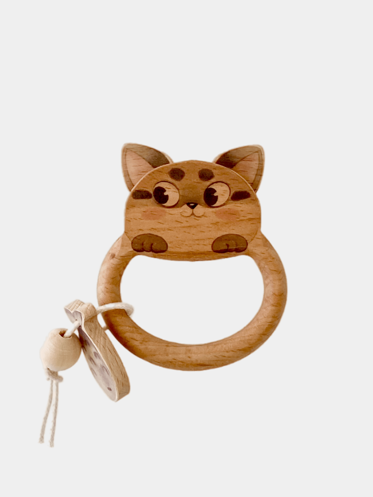 Купить Эко-грызунок-погремушка "Кошка" из натурального дерева