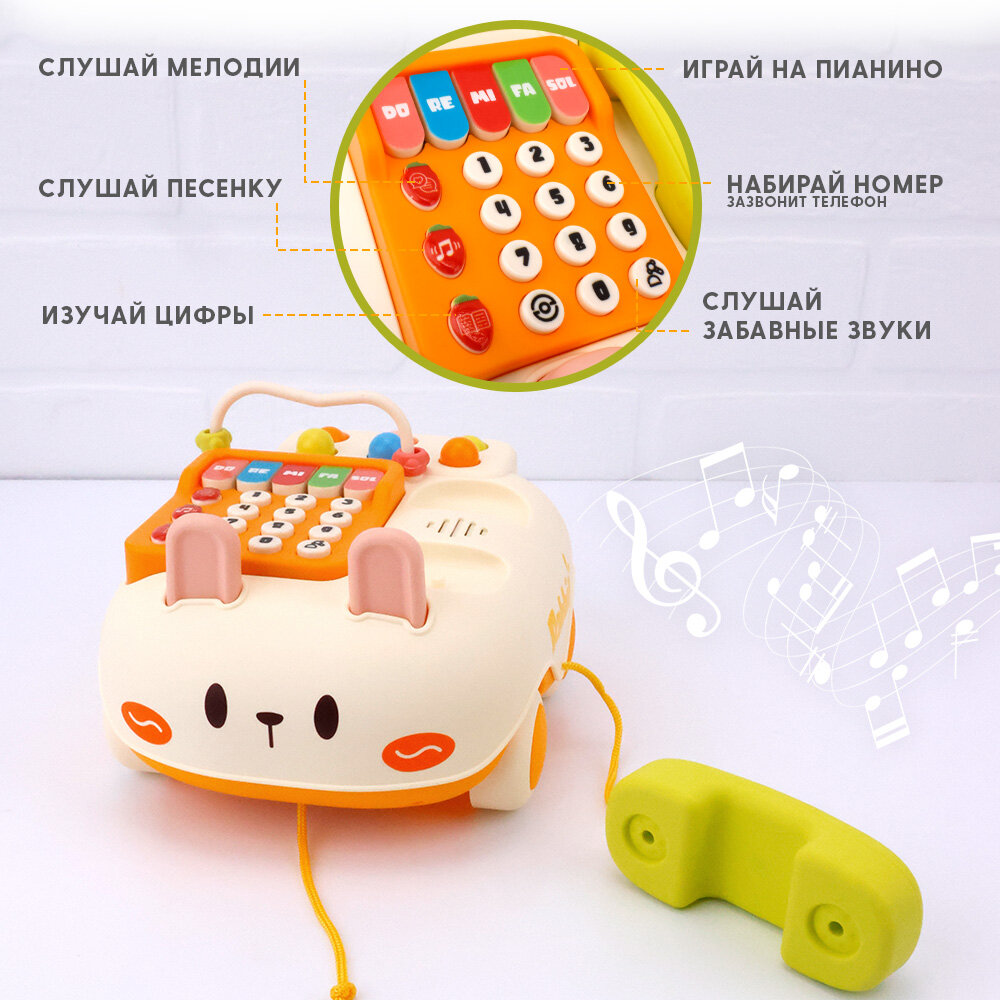 Развивающая каталка "Кролик" TIPTOPOLIS, от 1 до 3 лет, на батарейках интересное: