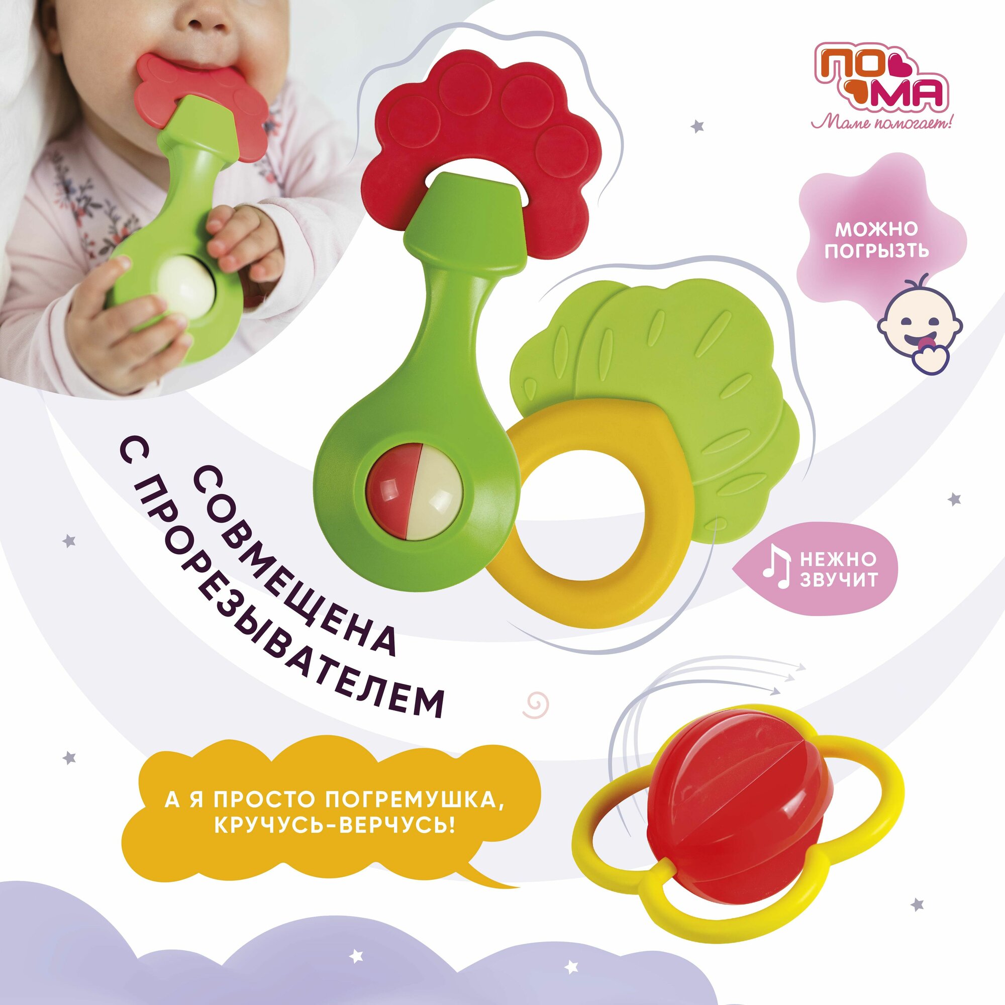 Погремушка для новорожденных 1 шт. 3 мес+