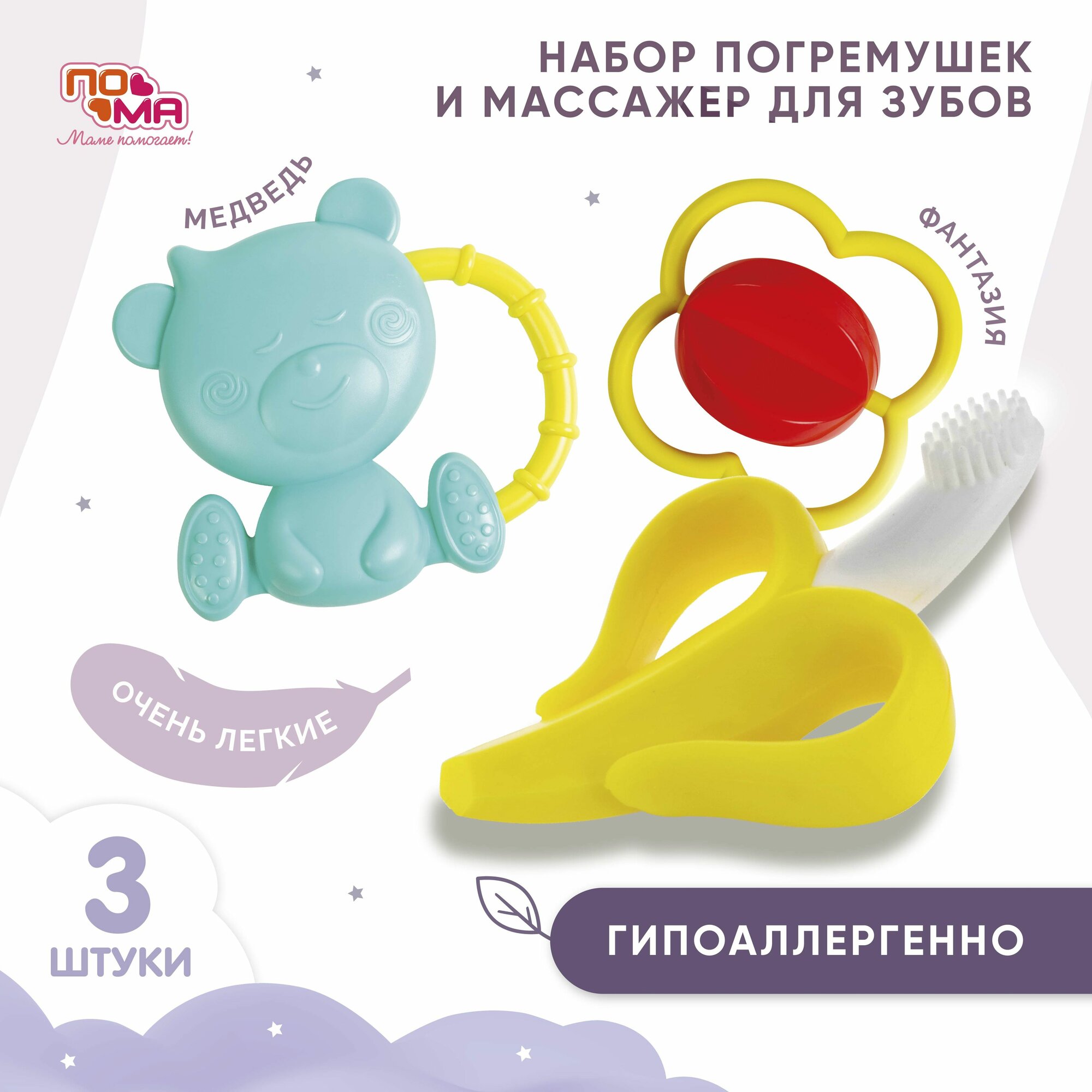 Набор погремушек и щетка грызунок 3 шт интересное:
