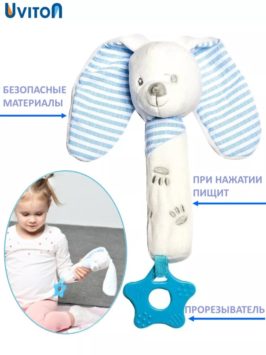 Развивающая игрушка Uviton "Baby Bunny", прорезыватель, с пищалкой, для новорожденных интересное: