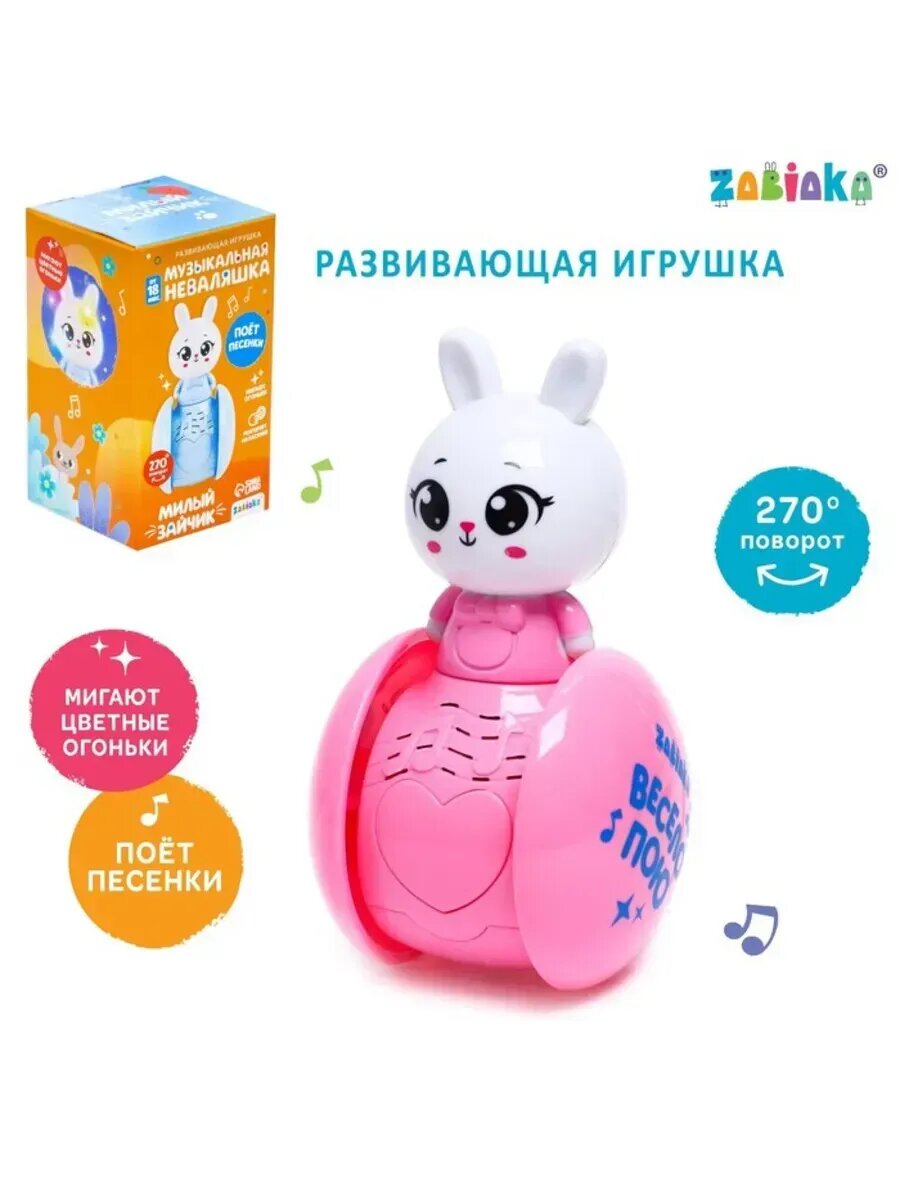 Музыкальная неваляшка зайчик, розовая игрушка для детей интересное: