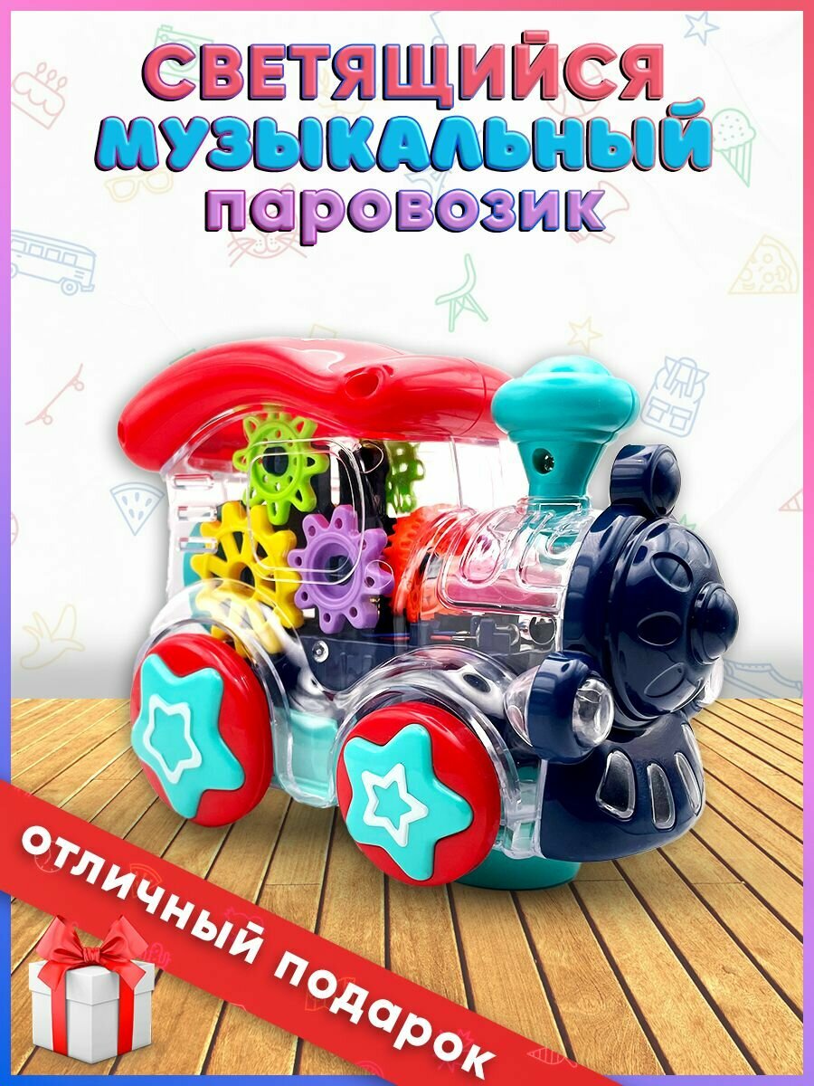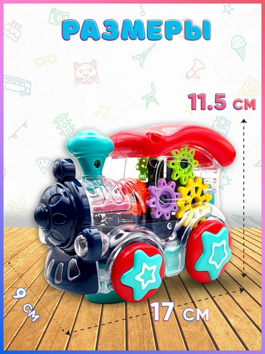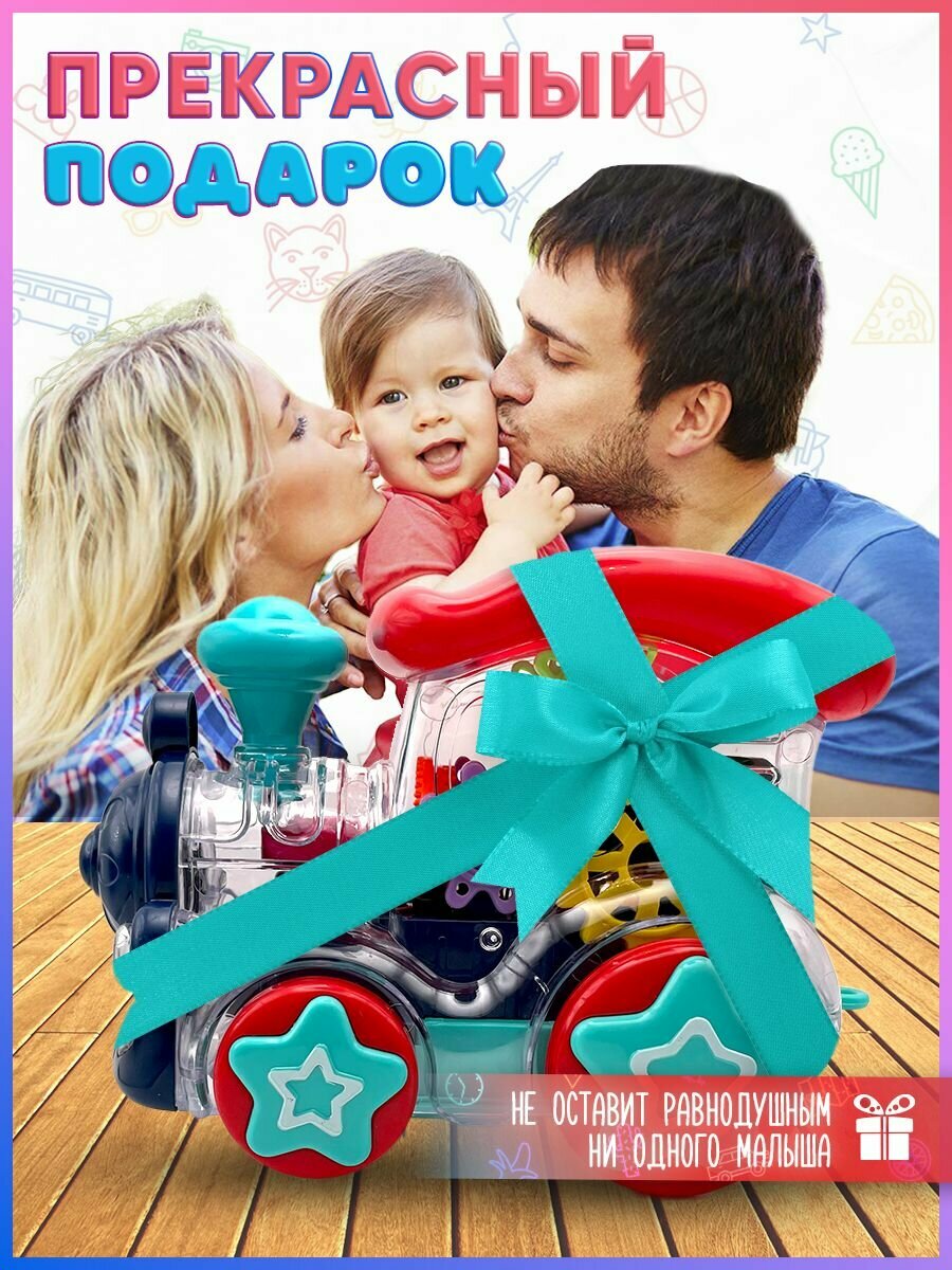 Игрушка детская развивающая паровозик с шестеренками со звуком, поезд игрушка на батарейках интересное: