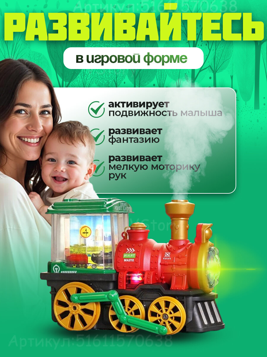 Ниже Вы можете прочитать отзывы на Игрушка детская развивающая, музыкальный паровозик с имитацией дыма из трубы, интерактивный поезд для малышей, ознакомится с подробными характеристиками, посмотреть интересные обзоры и фотографии на Игрушка детская развивающая, музыкальный паровозик с имитацией дыма из трубы, интерактивный поезд для малышей.