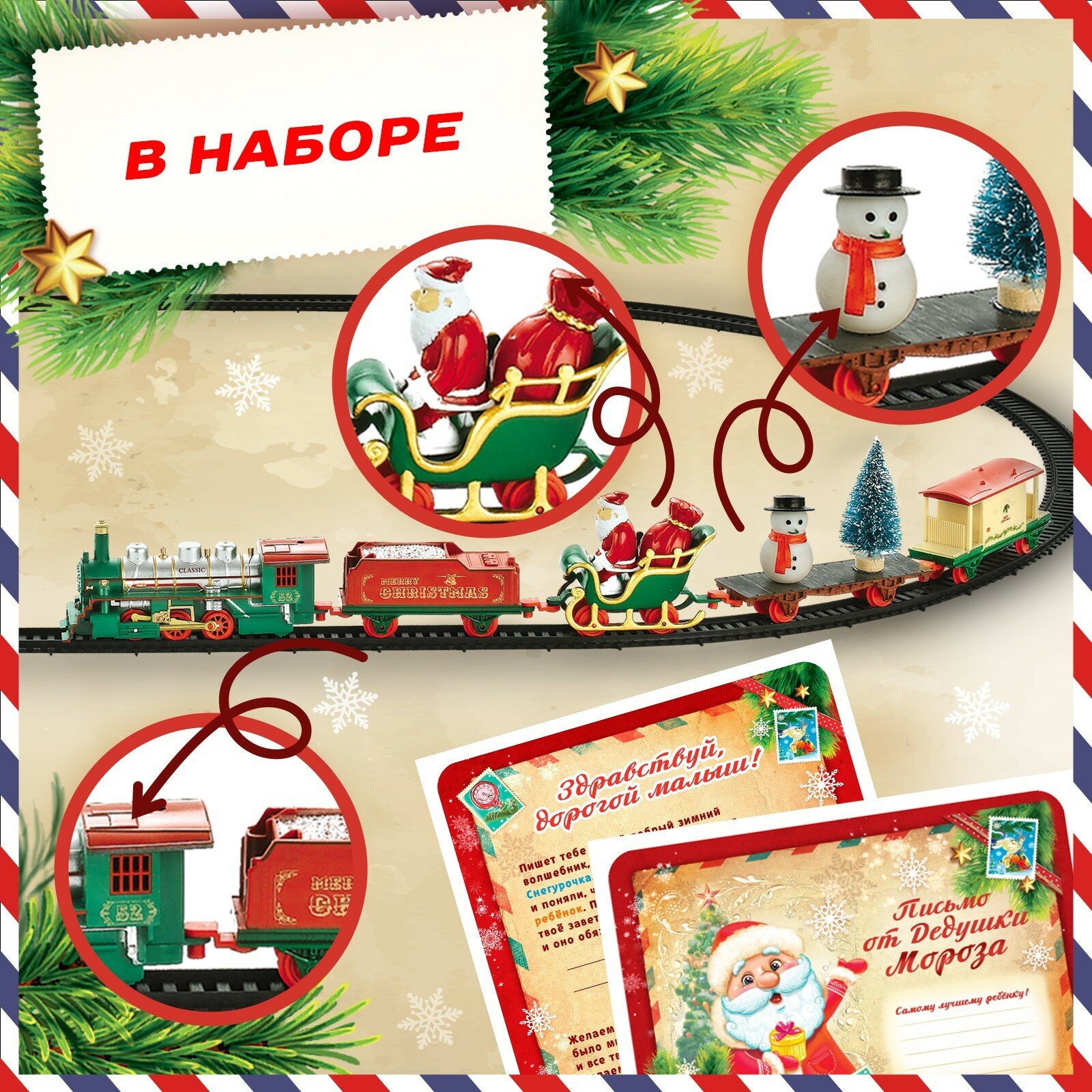Железная дорога "Новогодний поезд", световые и звуковые эффекты, работает от батареек, 3+