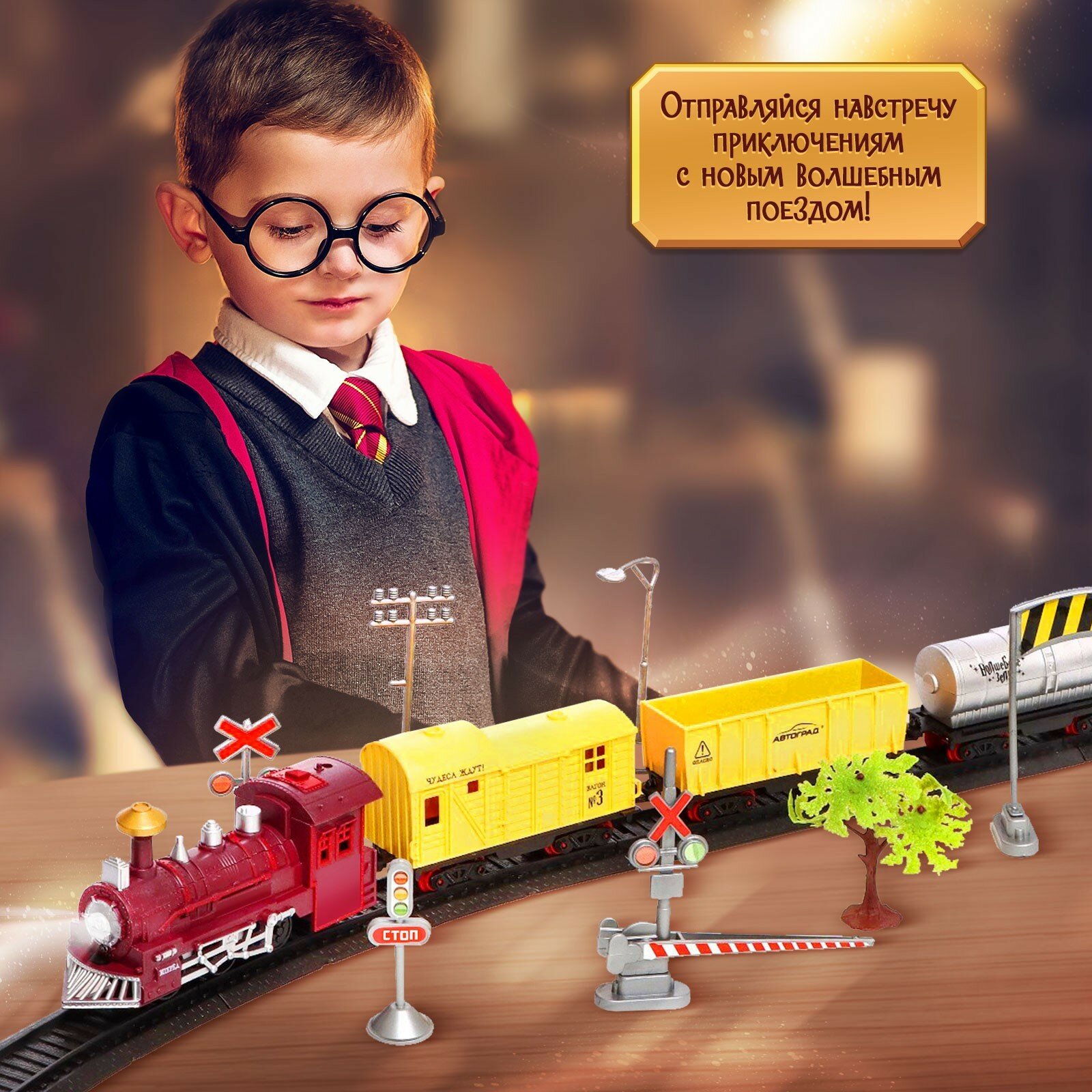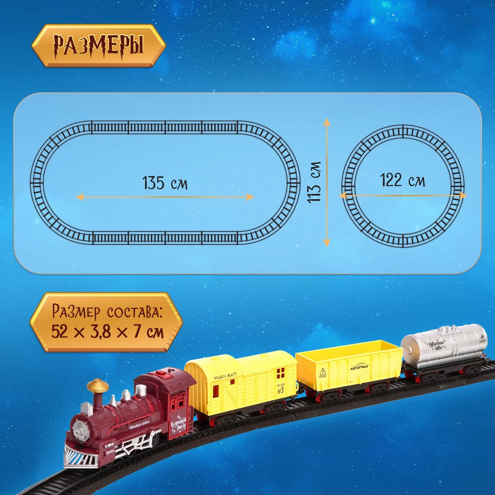СохранитьЖелезная дорога, Автоград, с топливным вагоном, световыми и звуковыми эффектами, 289 см, 1 набор интересное: