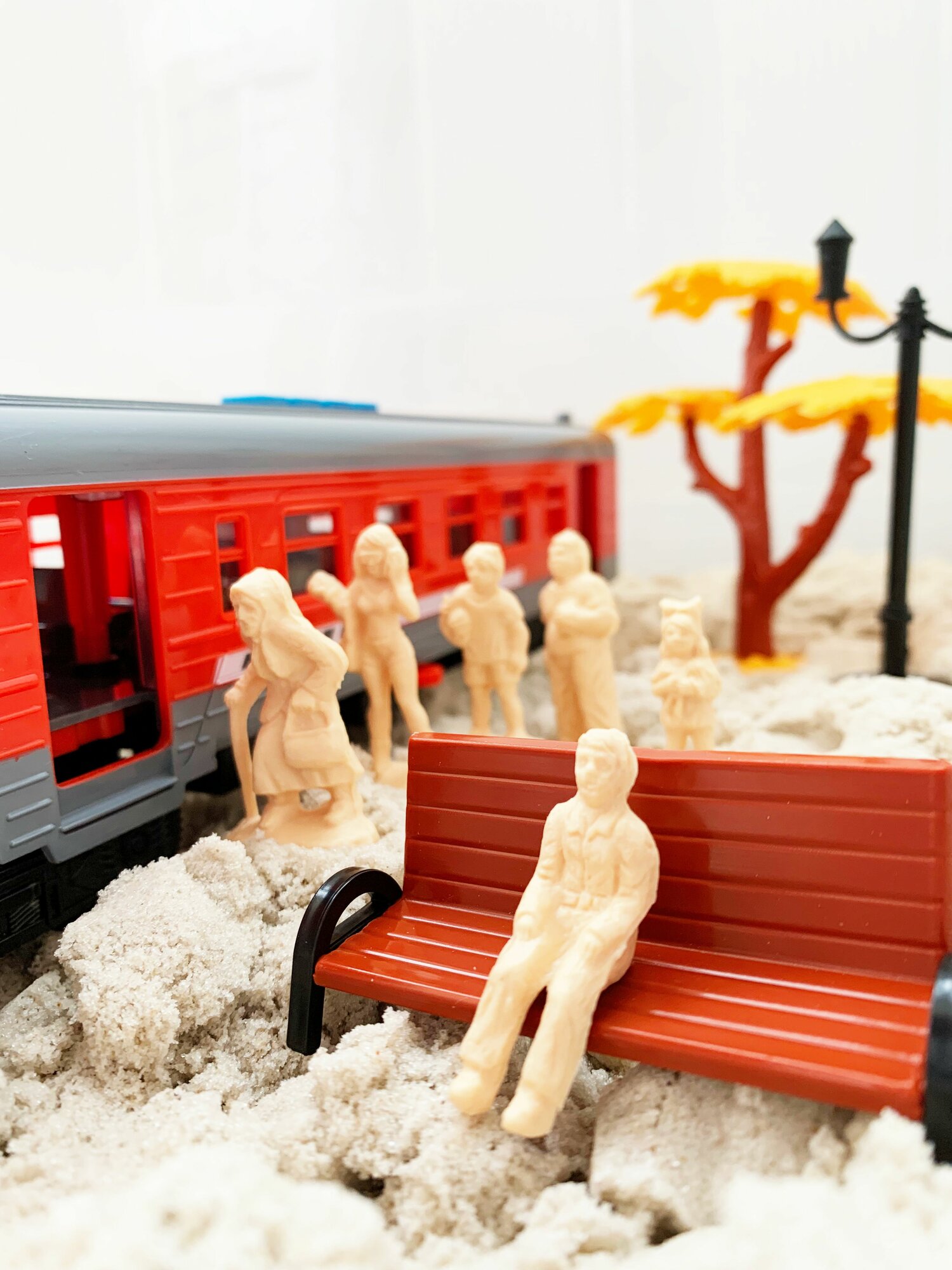 Купить Вагон электричка Эр2 - 30 см (свет+звук) с 6-ю пассажирами / СССР красная