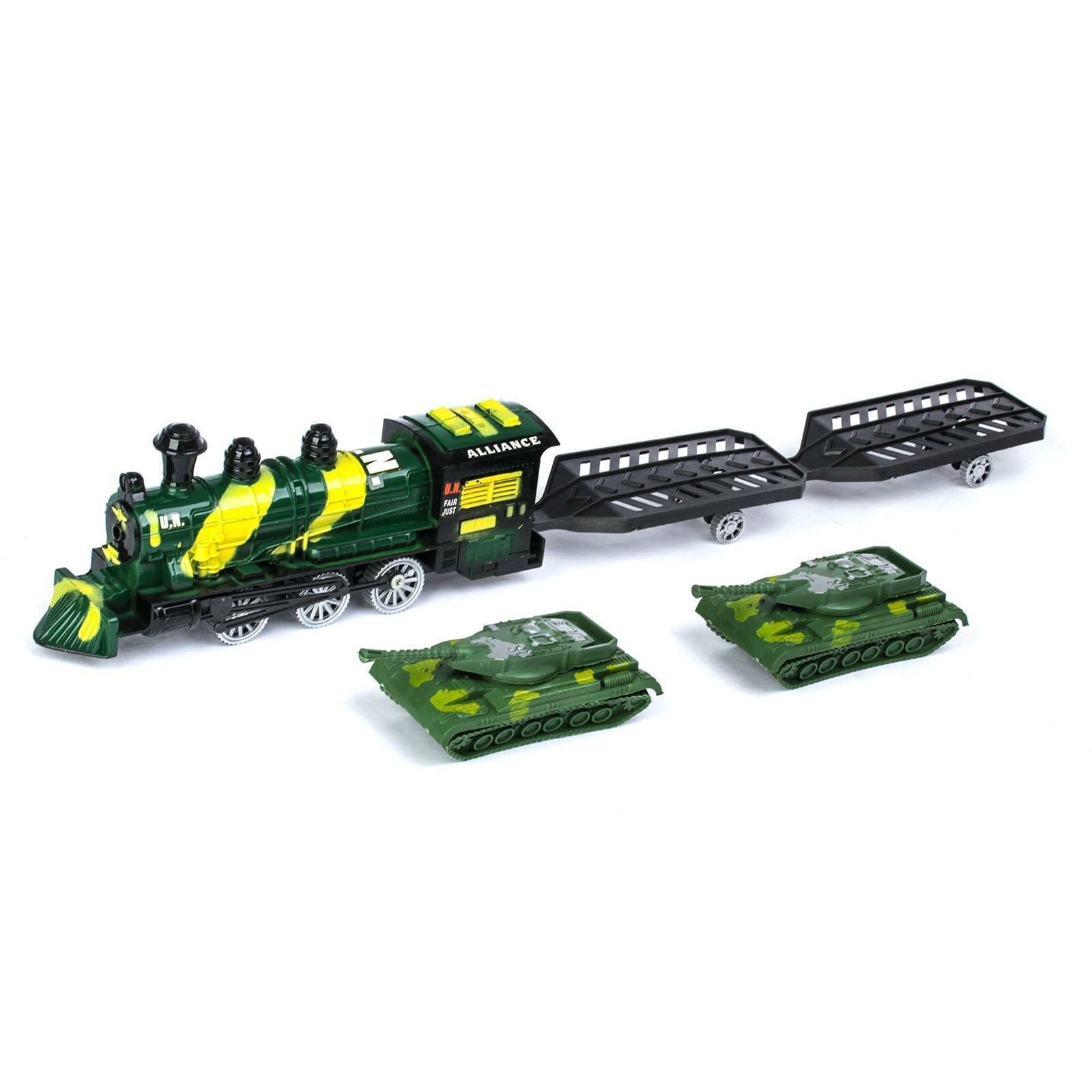 Паровоз инерционный ЛАС играс "Военный", с танками, цвета микс интересное: