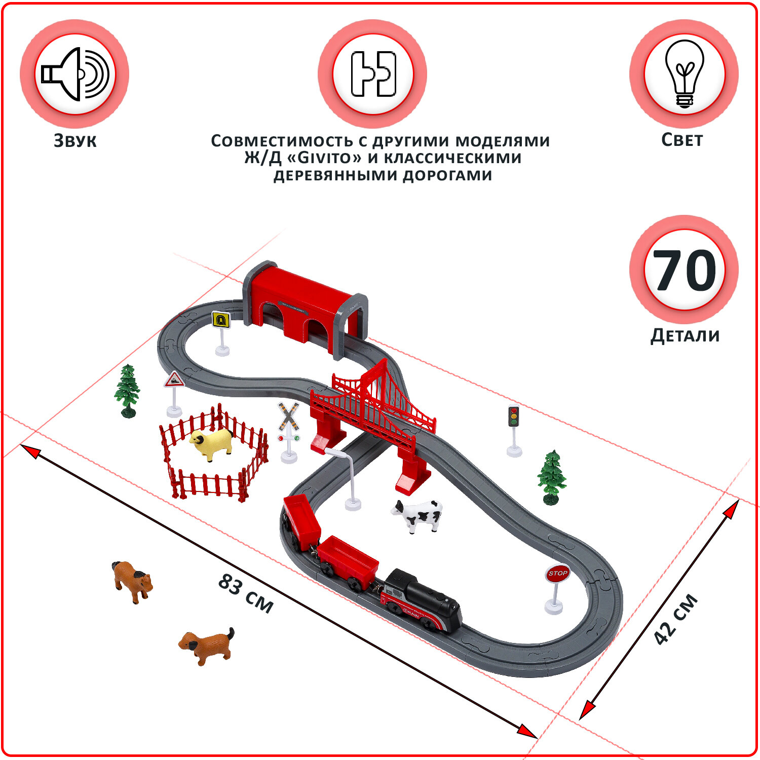 Купить Детская железная дорога Givito "Мой город" 70 предметов, на батарейках G211-022