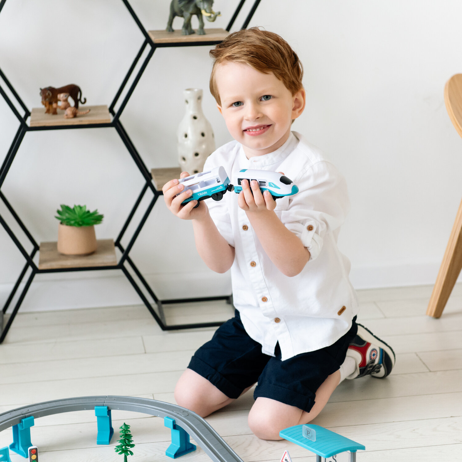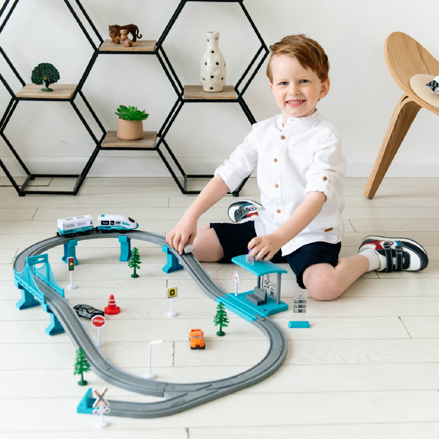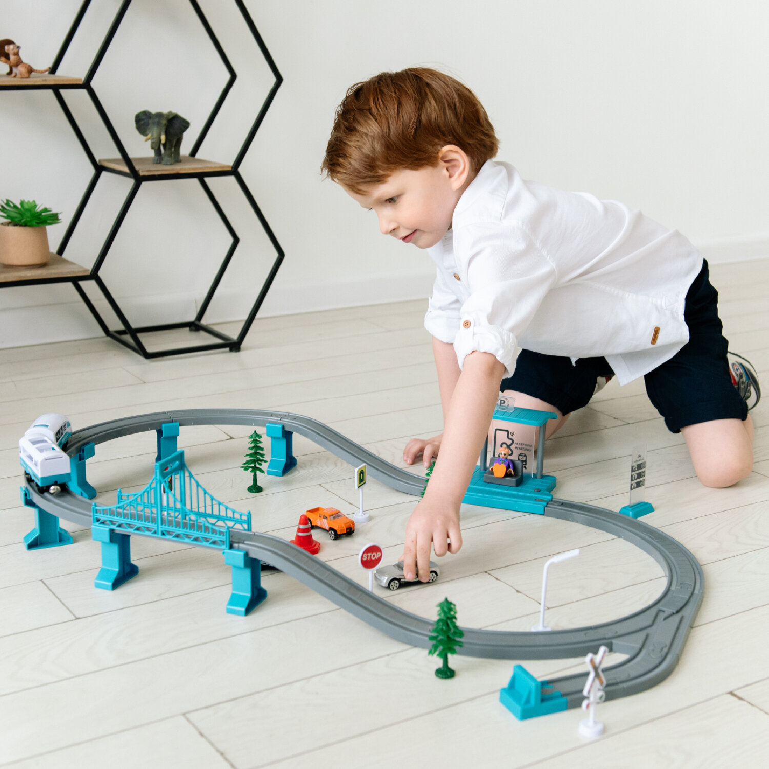 Купить Детская железная дорога Givito "Мой город, 63 предмета", на батарейках со светом и звуком (Бирюзовая) G211-015
