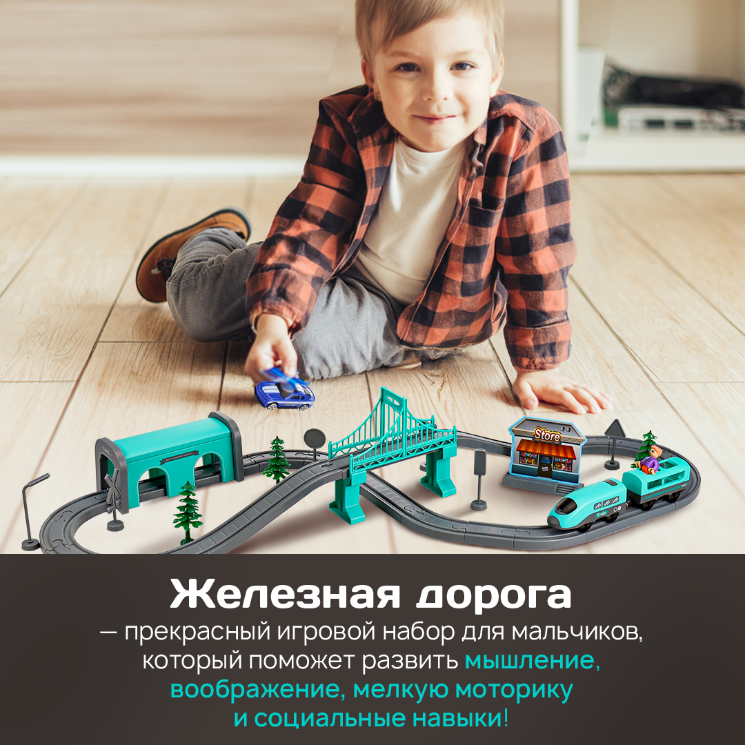 Железная дорога с электропоездом (66 деталей, 83х44х15 см, на батарейках) Артикул Y24891011 интересное: