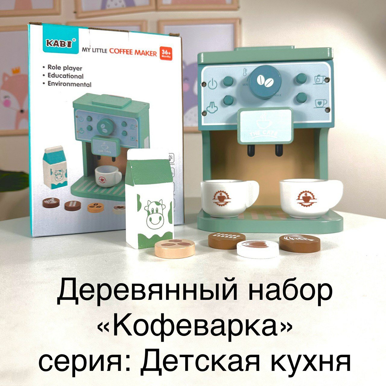 Детская посуда деревянная Кофеварка развивающая игра интересное: