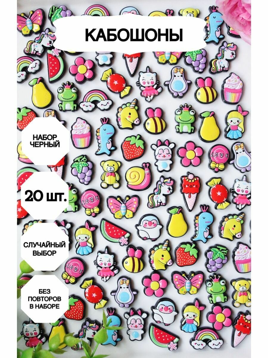 Набор шармов Market13Salnik "Кабошоны", для слайма и рукоделия, акриловые и полимерные, 20 шт