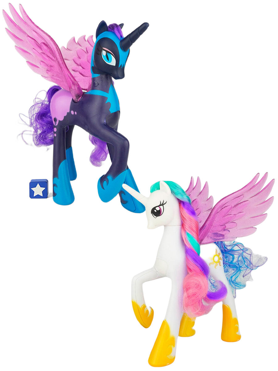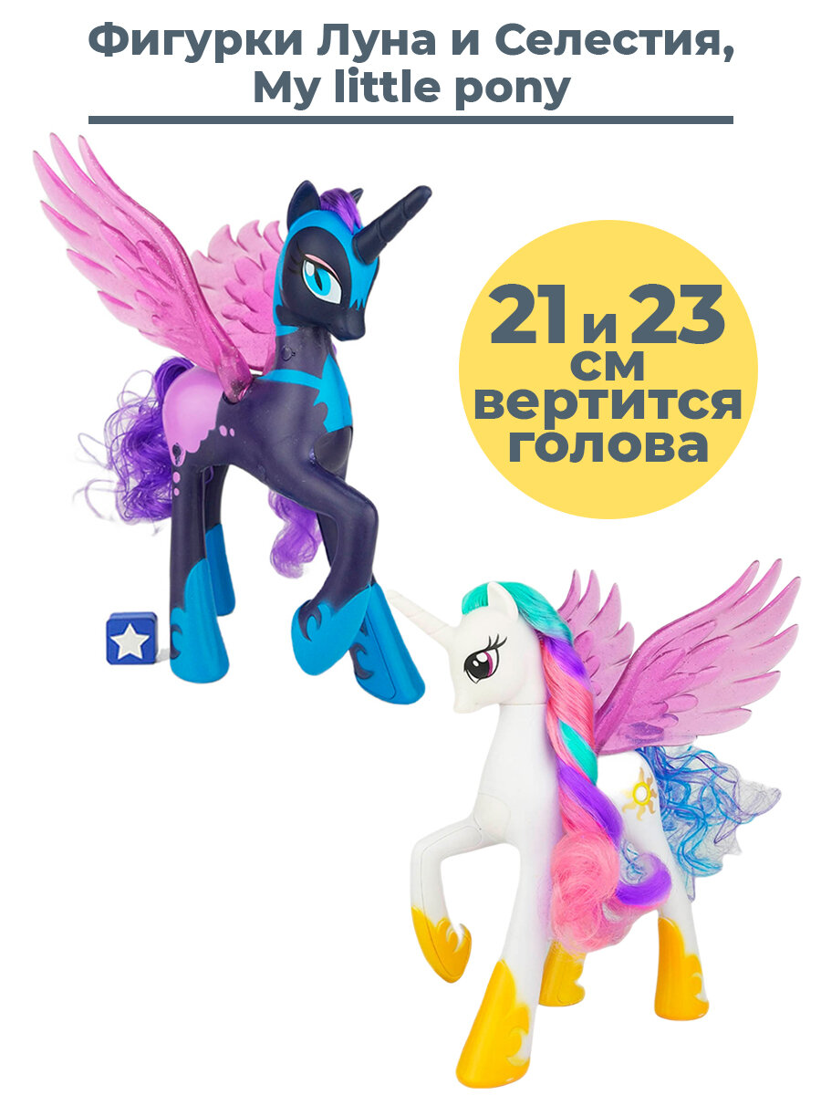 Купить Фигурки Май Литл Пони 2 в 1 аликорны единороги пегасы Прицесса Селестия и Принцесса Луна My Little Pony Celestia Luna 21 и 23 см вертится голова