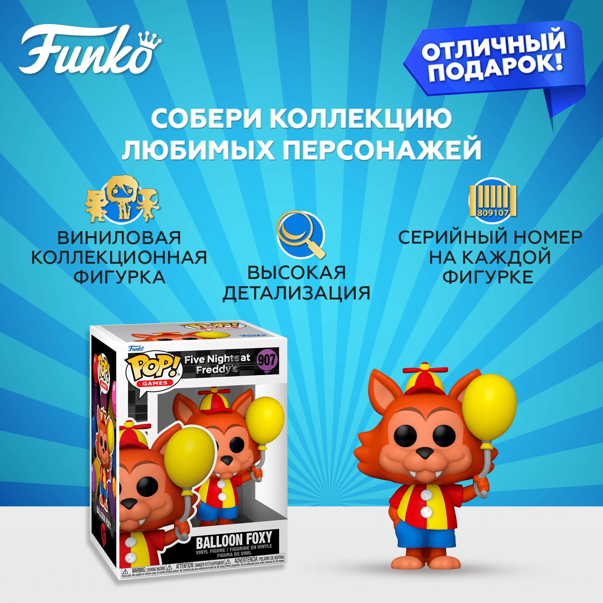СохранитьФигурка Funko POP! Games FNAF Balloon Circus Balloon Foxy / Фанко ПОП по мотивам игры Пять ночей с Фредди интересное: