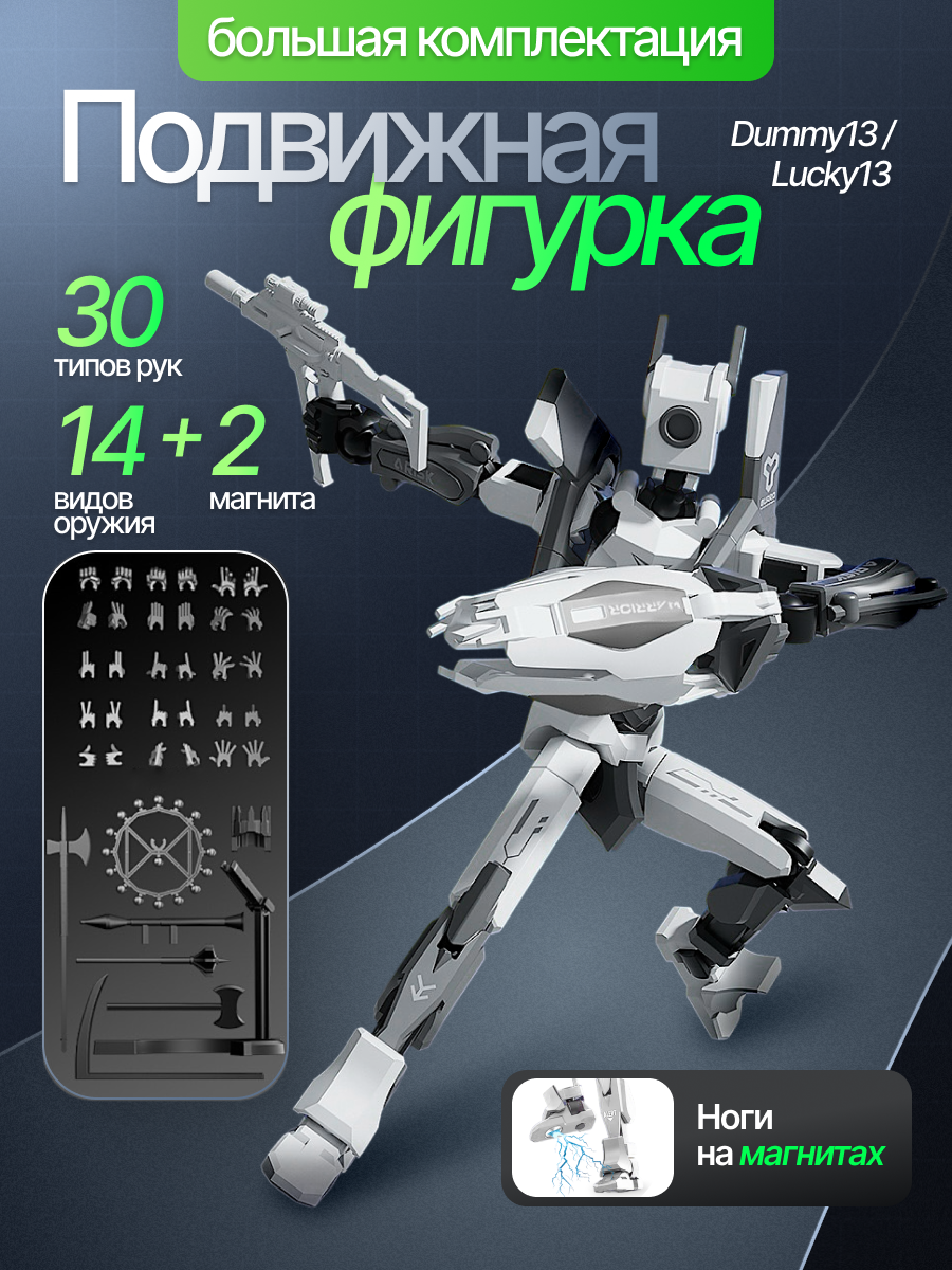 СохранитьИгрушка сборная шарнирная робот - экшен фигурка Dummy13 Lucky13 белый интересное: