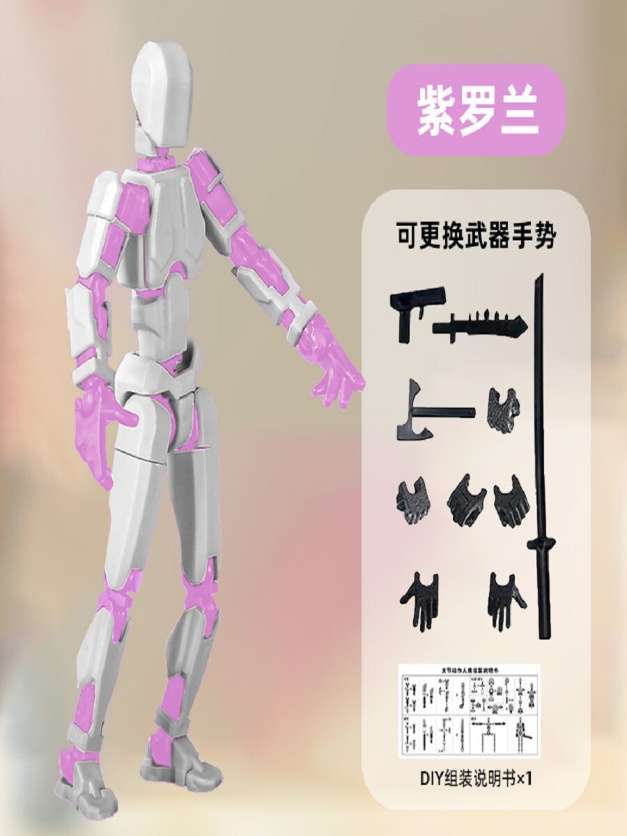 СохранитьПодвижный шарнирный конструктор из пластика робот Dummy13 бело-фиолетовый цвет интересное: