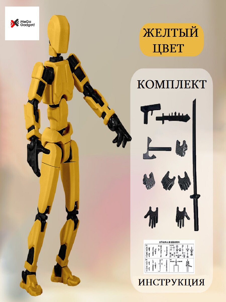 Купить Подвижный шарнирный конструктор из пластика робот Dummy13 желтый цвет