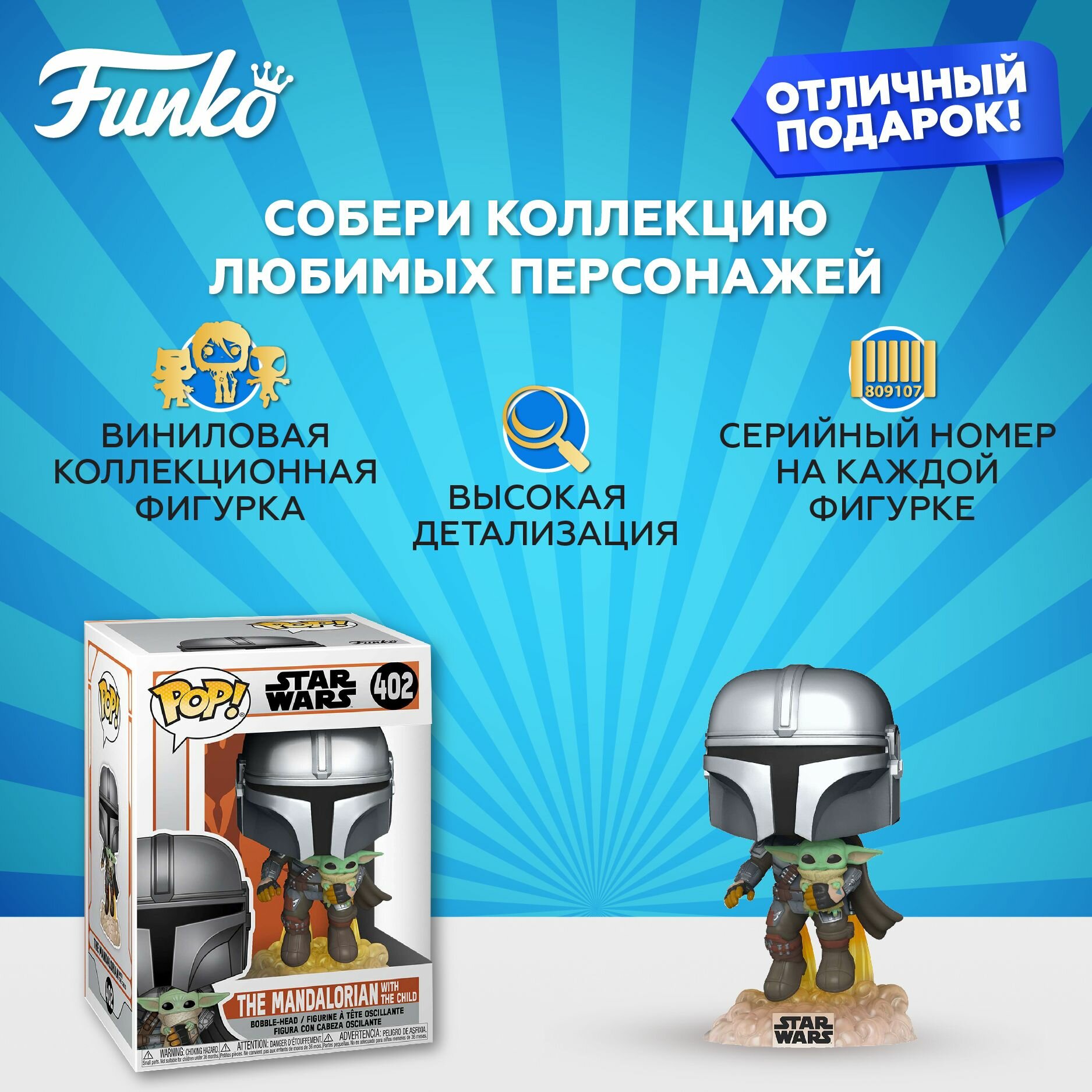СохранитьФигурка Funko Bobble "Mandalorian" Star Wars, ПВХ, высота 11 см интересное: