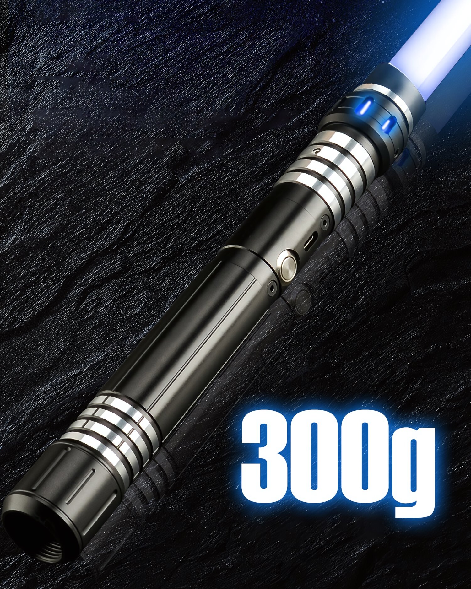 Комплект из двух световых мечей, черная и серебряная рукоять, клинок меняет цвет, звуковые эффекты, вибрация
