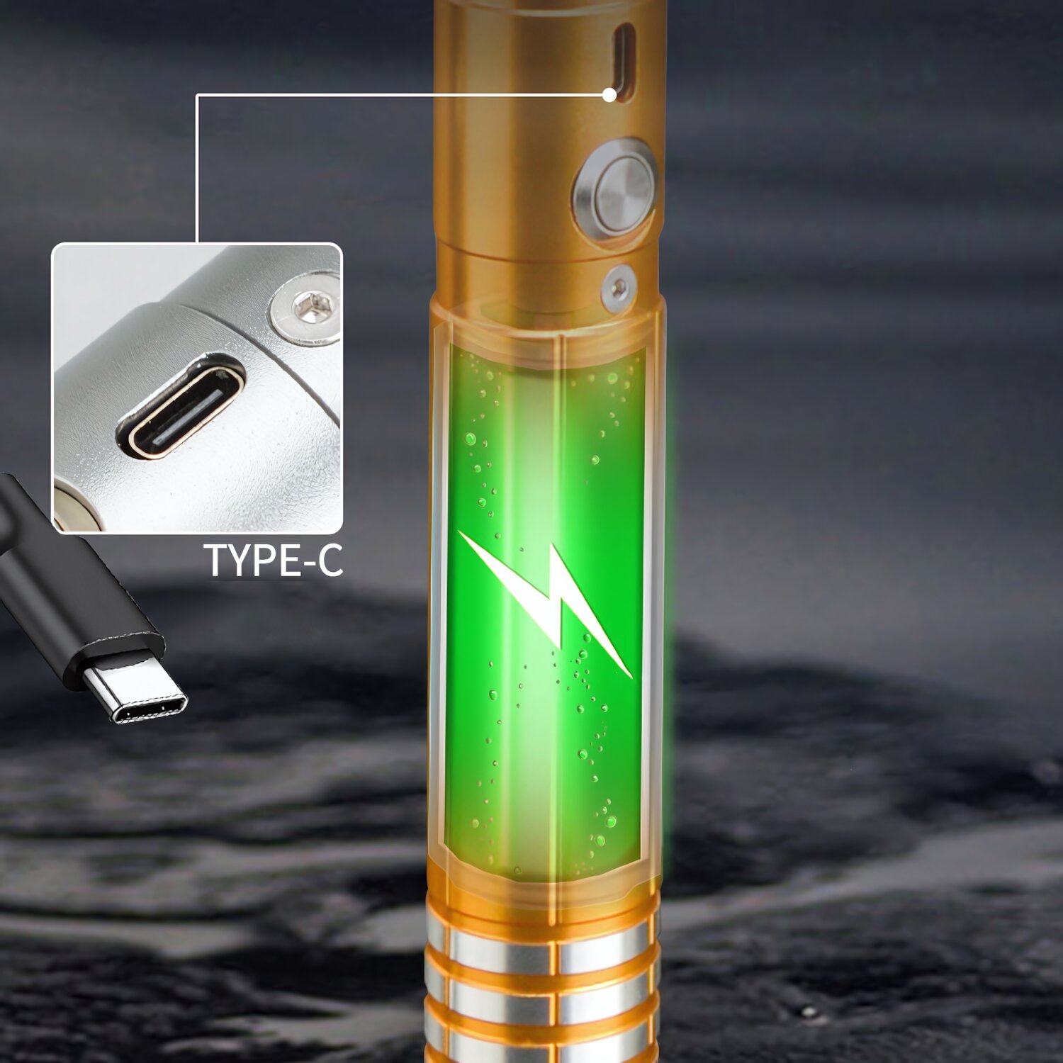 Световой меч со звуковыми эффектами и вибрацией, клинок меняет цвет, золотая рукоять