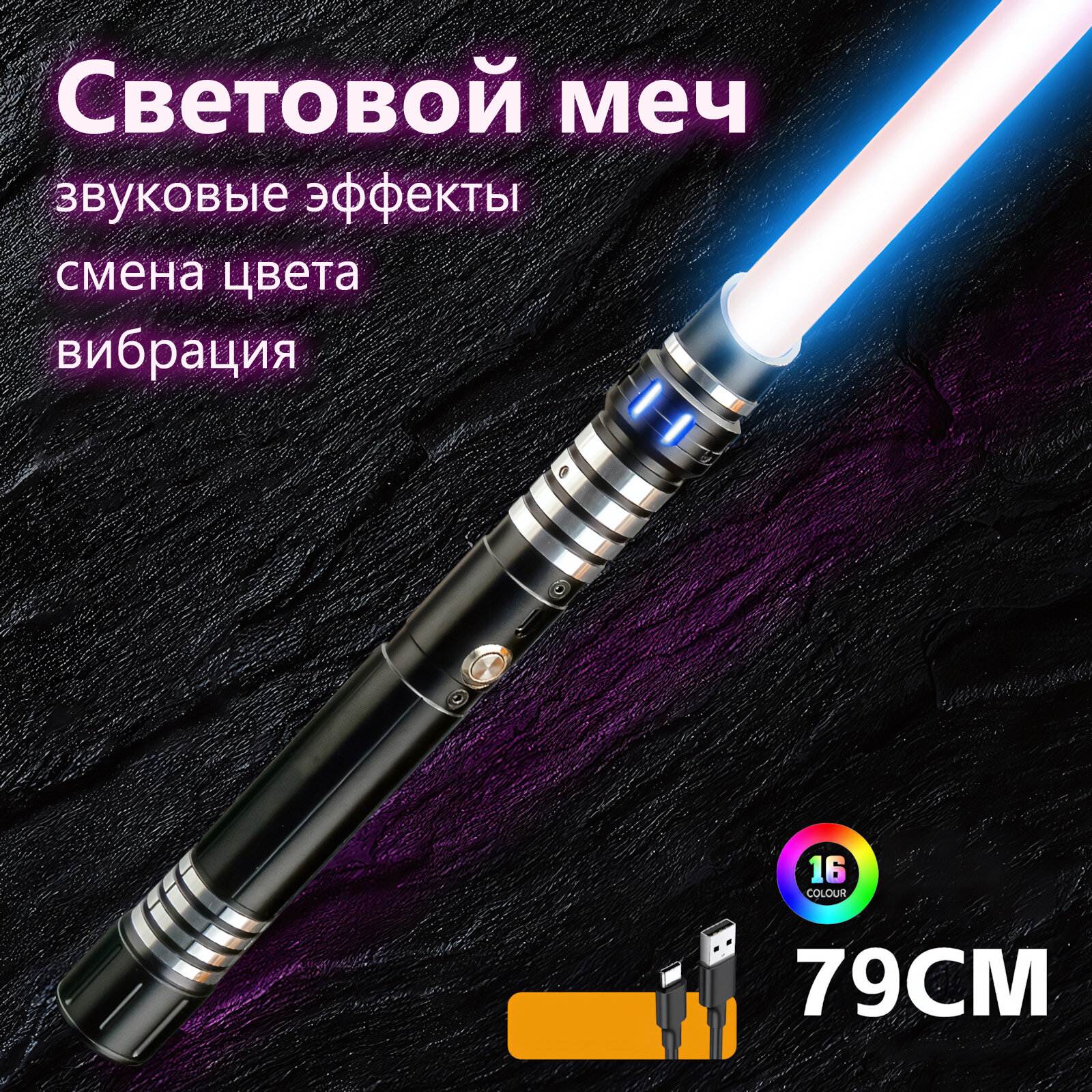 Купить Световой меч со звуковыми эффектами и вибрацией, клинок меняет цвет, черная рукоять