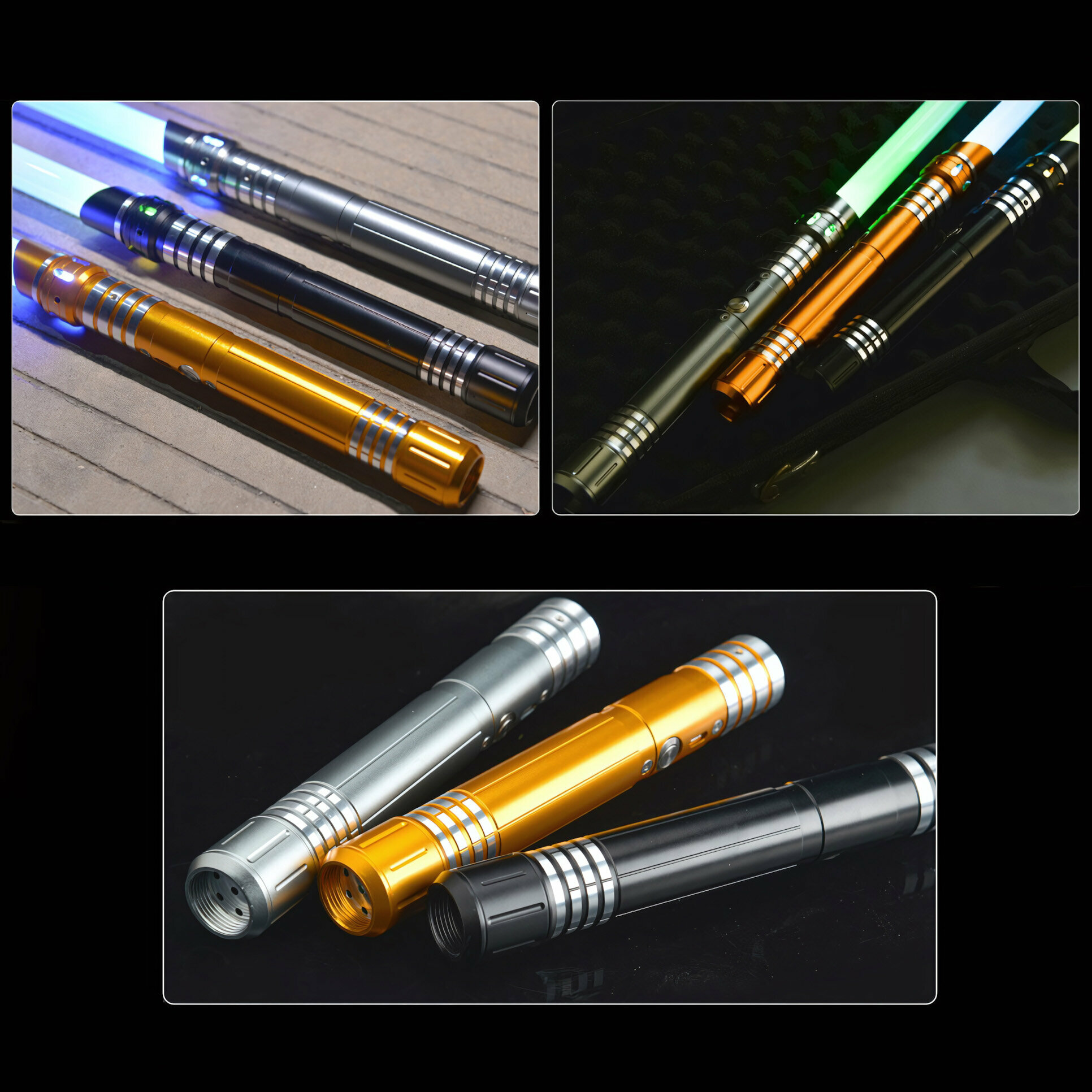 Световой меч со звуковыми эффектами и вибрацией, клинок меняет цвет, золотая рукоять