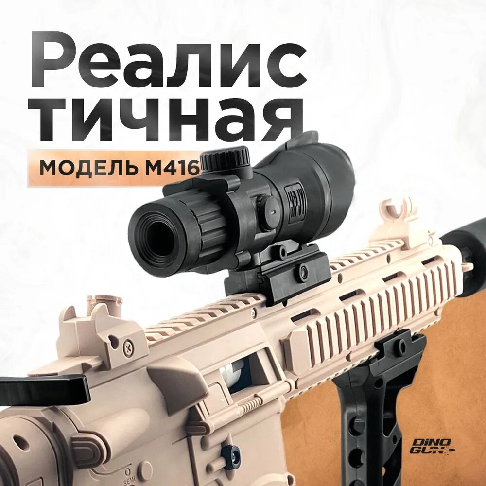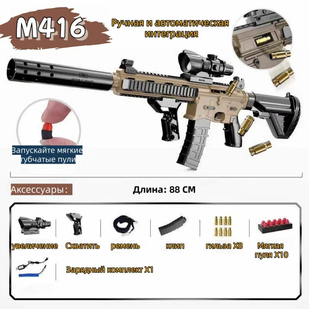 Купить Ручной пистолет для метания софтболов M416 песочный в стандартной комплектации, игрушка винтовка