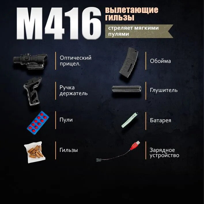 Ниже Вы можете прочитать отзывы на Ручной пистолет для метания софтболов M416 песочный в стандартной комплектации, игрушка винтовка, ознакомится с подробными характеристиками, посмотреть интересные обзоры и фотографии на Ручной пистолет для метания софтболов M416 песочный в стандартной комплектации, игрушка винтовка.