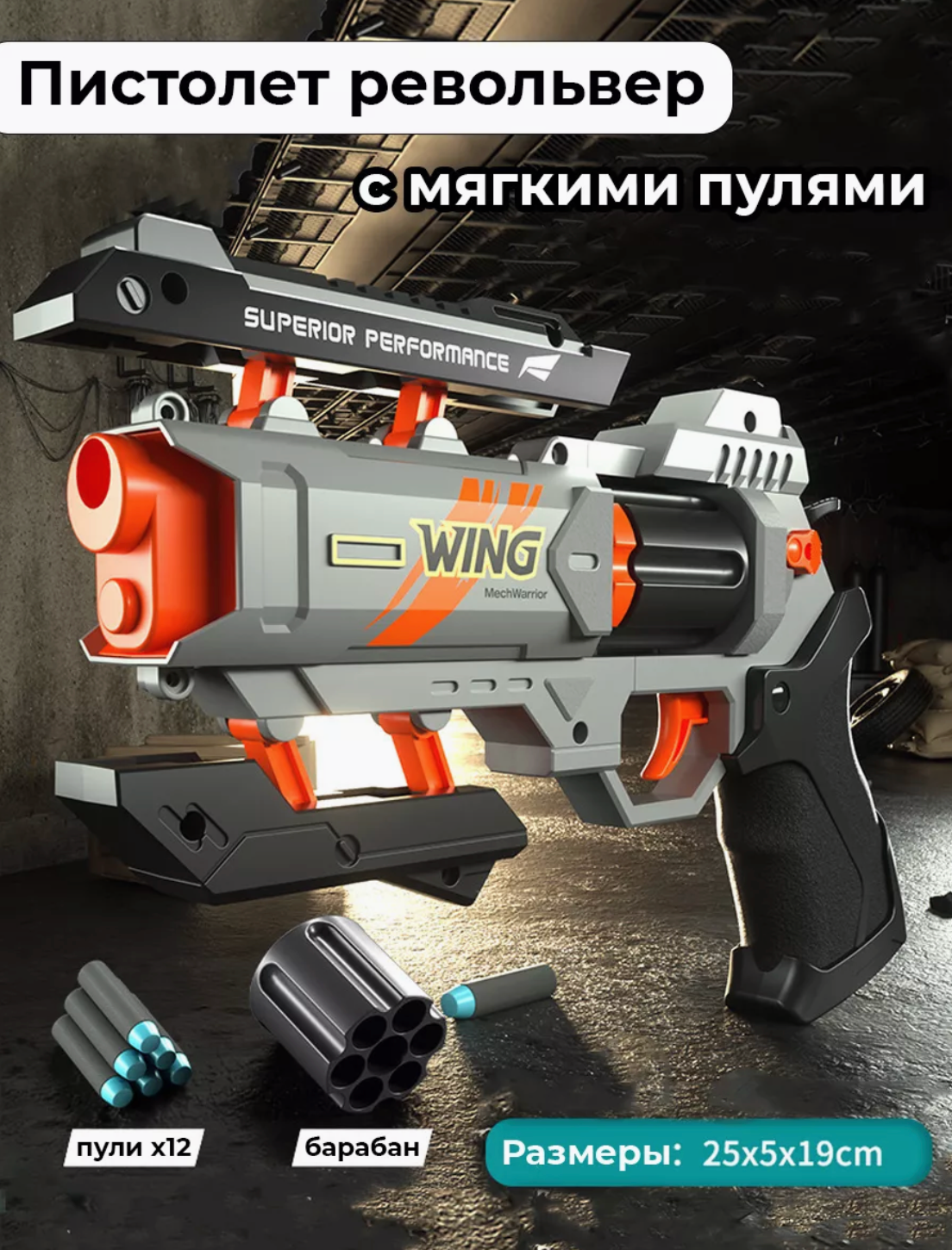 Детский игрушечный револьвер с 12 патронами пластиковый от MARI TOYS интересное: