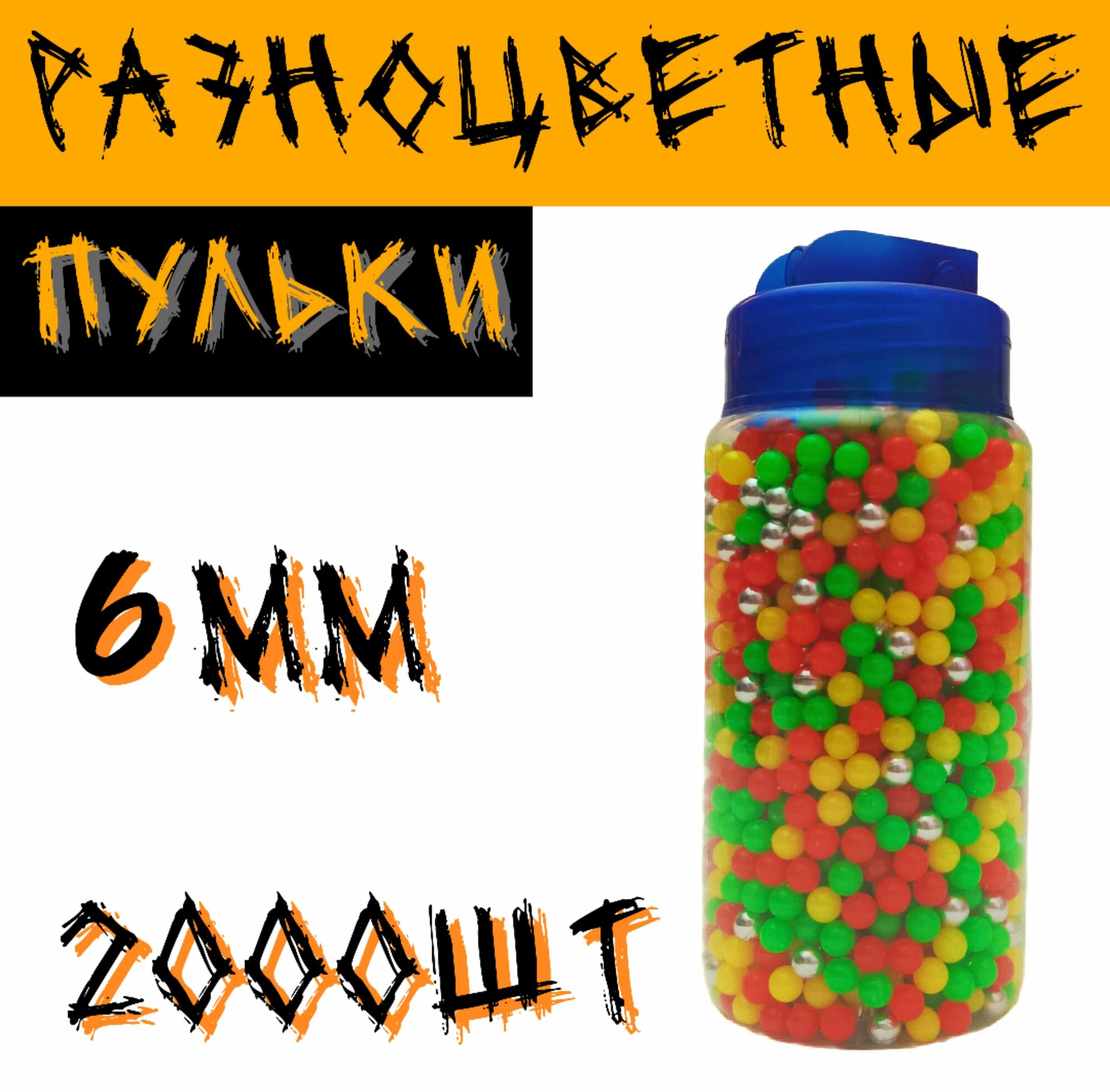 Купить Пульки 6 мм для пистолета игрушечного, пули для пневматики 6мм 2000 шт, разноцветные