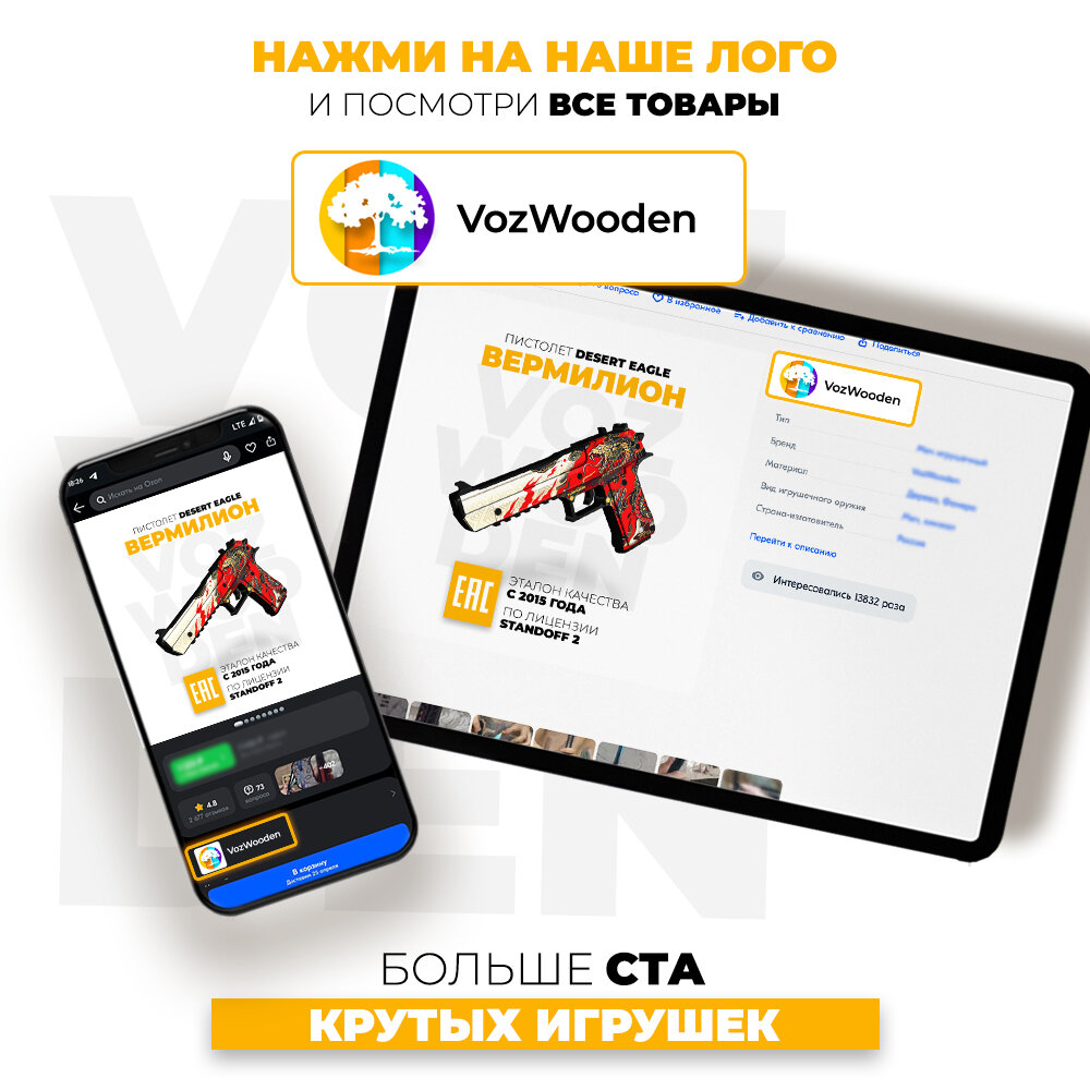 Деревянный пистолет Дигл Вермилион Стандофф 2 / Desert Eagle Standoff 2 интересное: