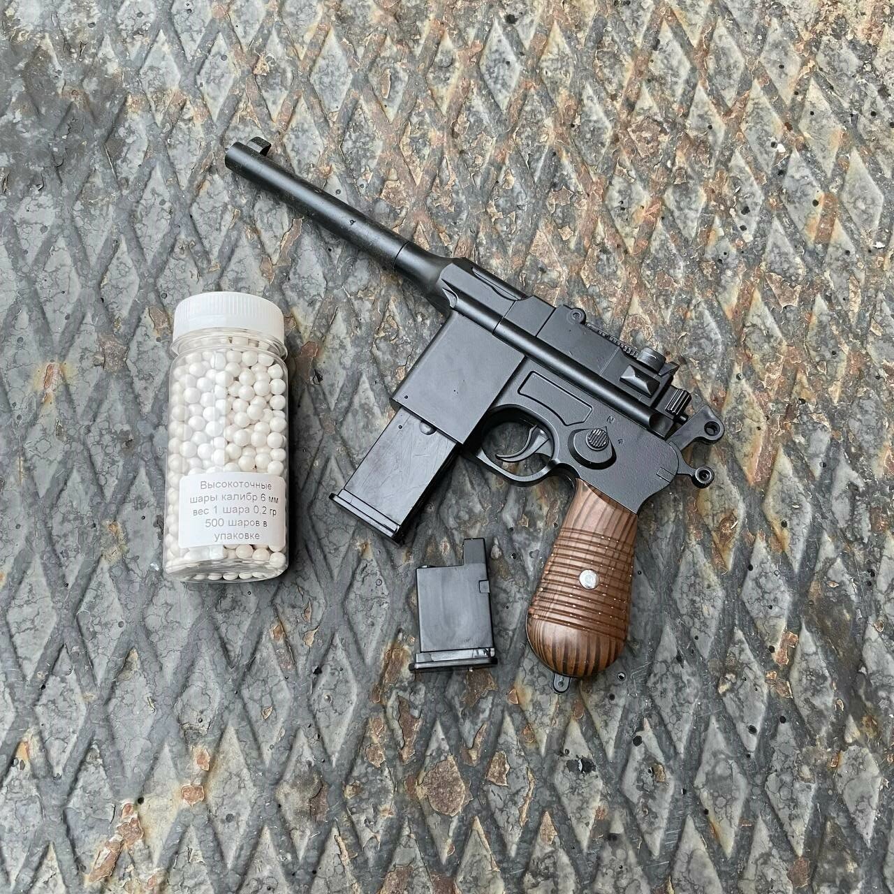 Игрушечный тяжелый пистолет Маузер (Mauser) в комплекте с 500 пластиковыми пульками 6 мм. интересное: