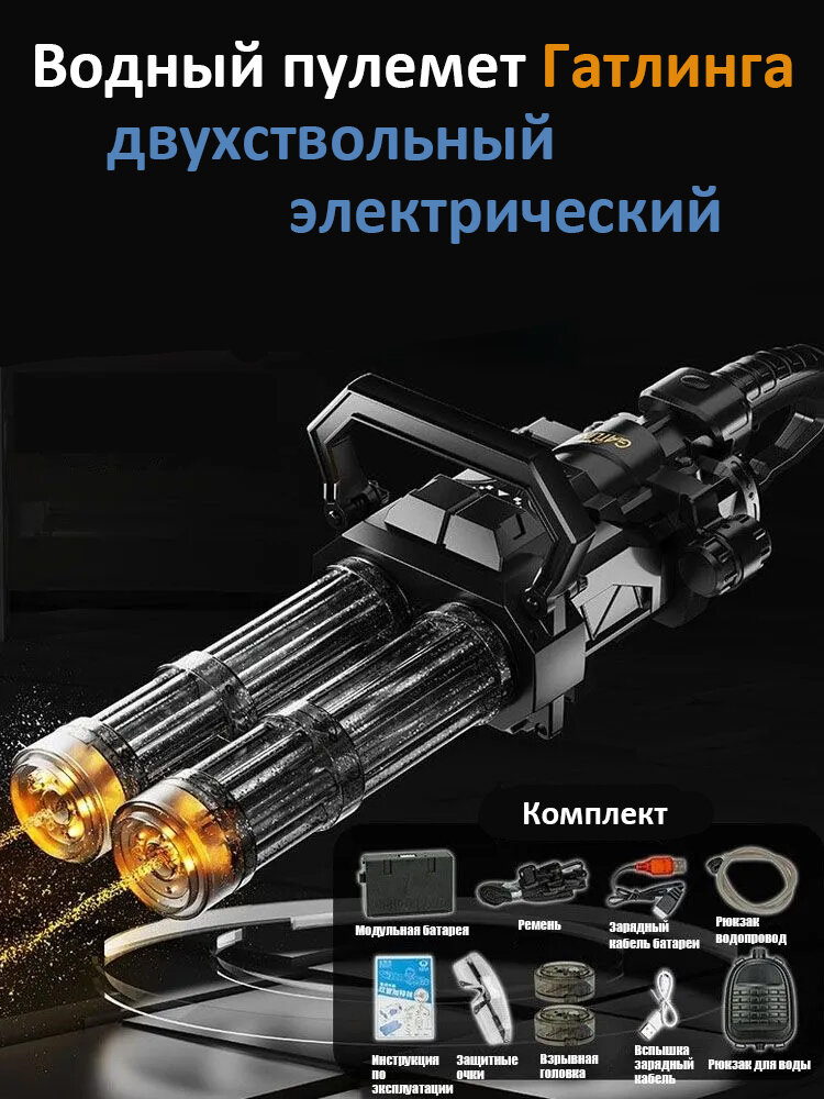 Водяной пулемет Гатлинга двухствольный электрический детский пистолет черный интересное: