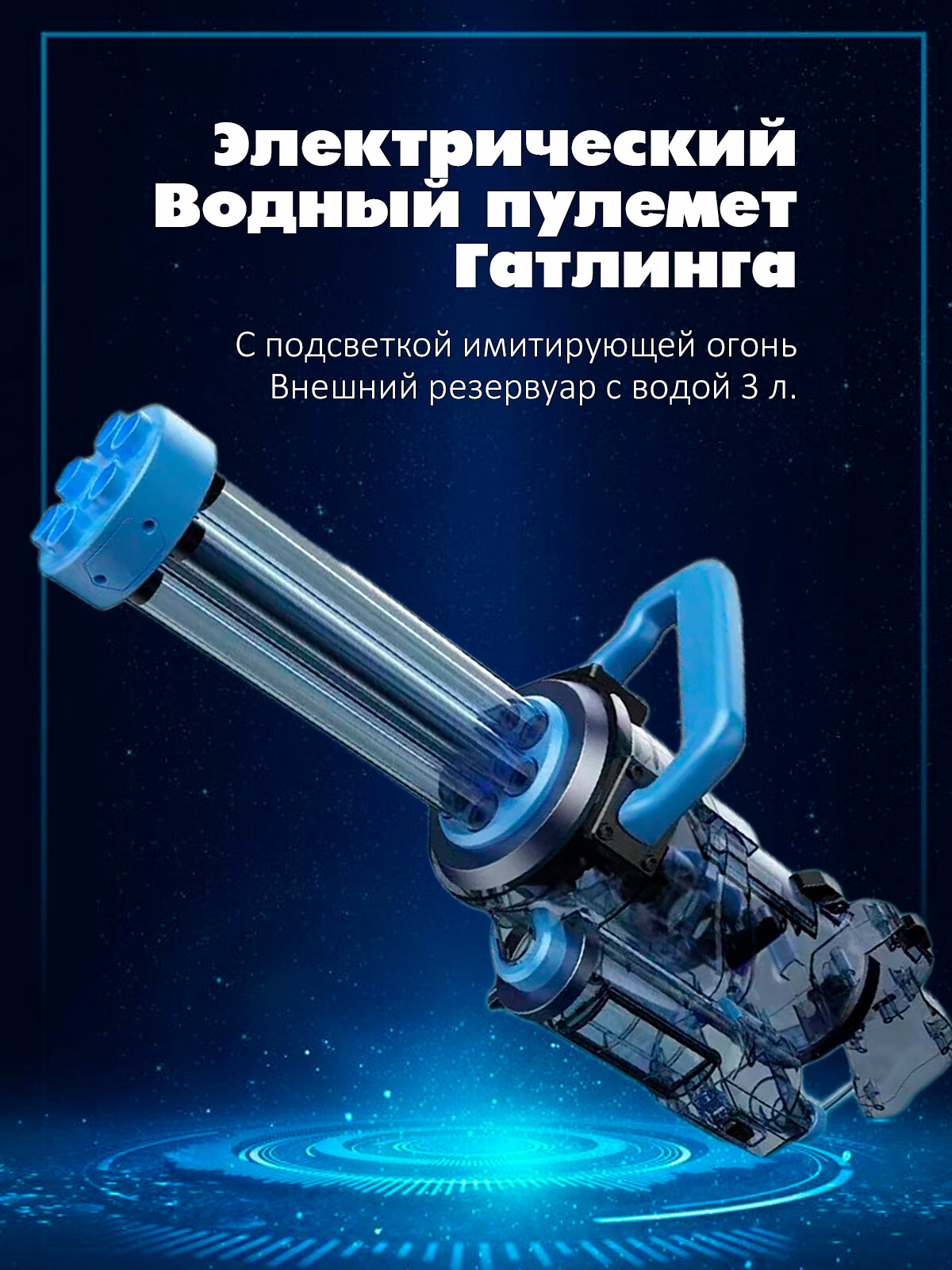 Купить Водяной пулемет Гатлинга электрический детский пистолет синий