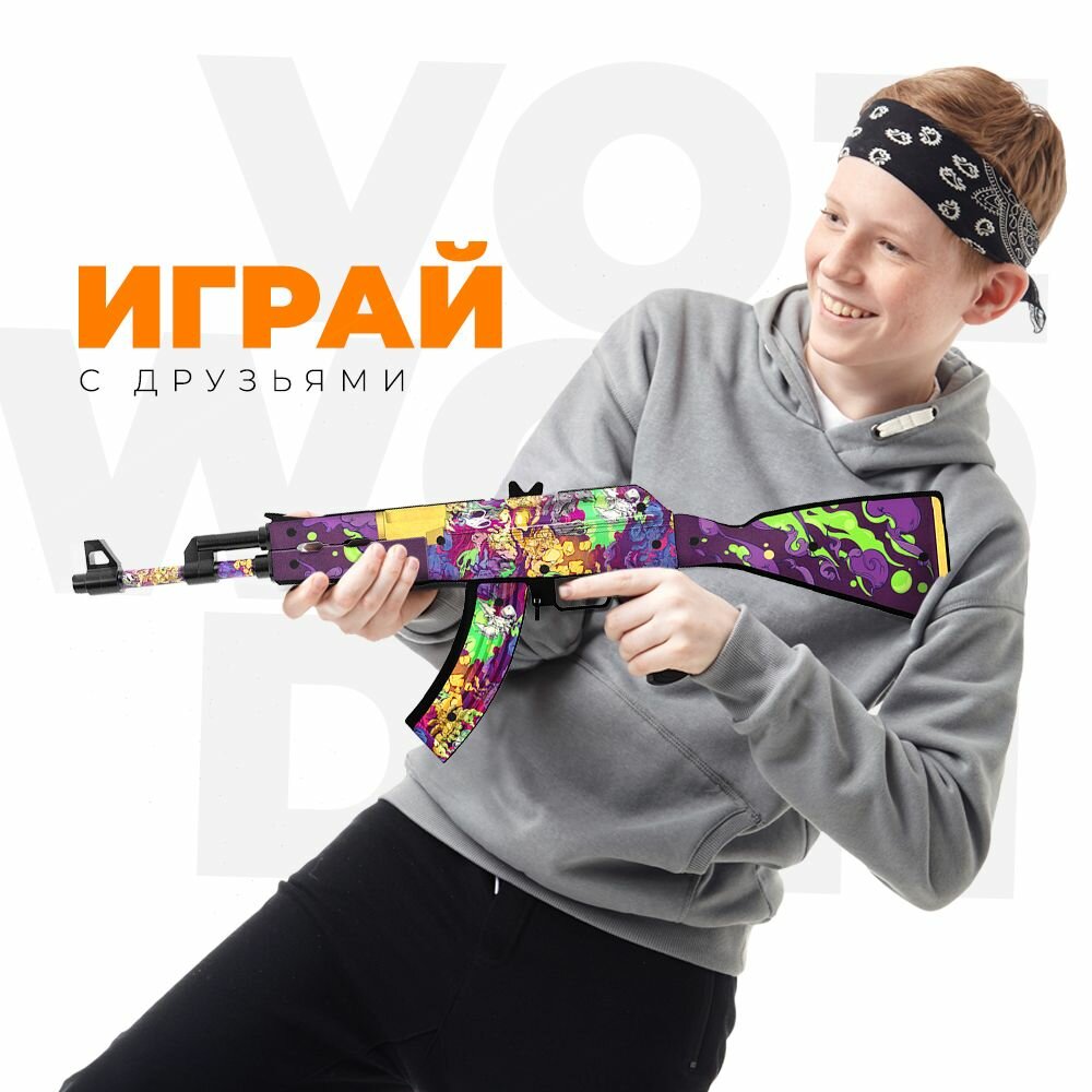 Игрушечный автомат VozWooden AKR Тег Король Стандофф 2 АК-47 деревянный резинкострел