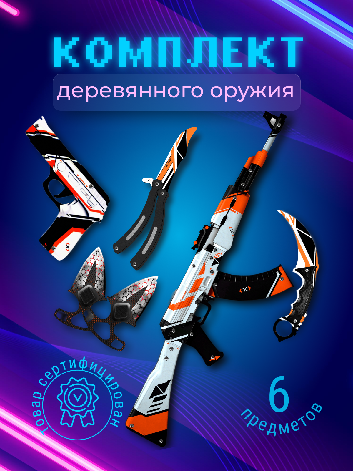 Игрушечный автомат детский пистолет ножик для мальчика, сине-оранжевый