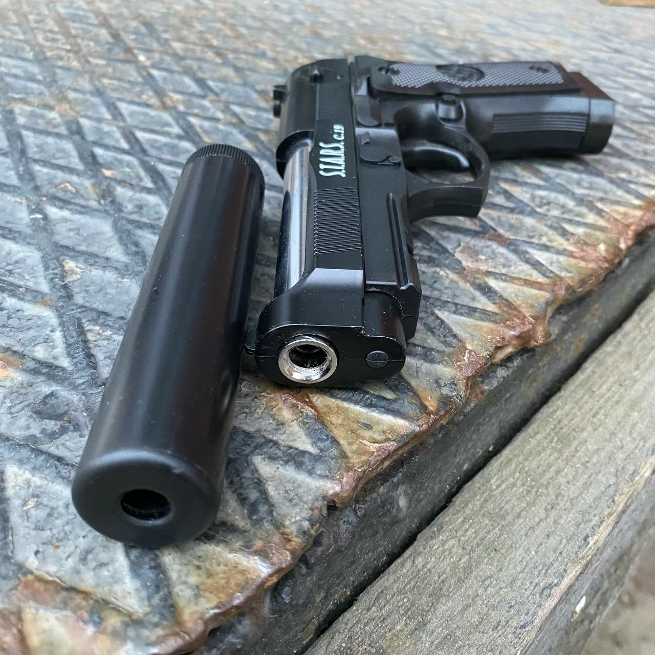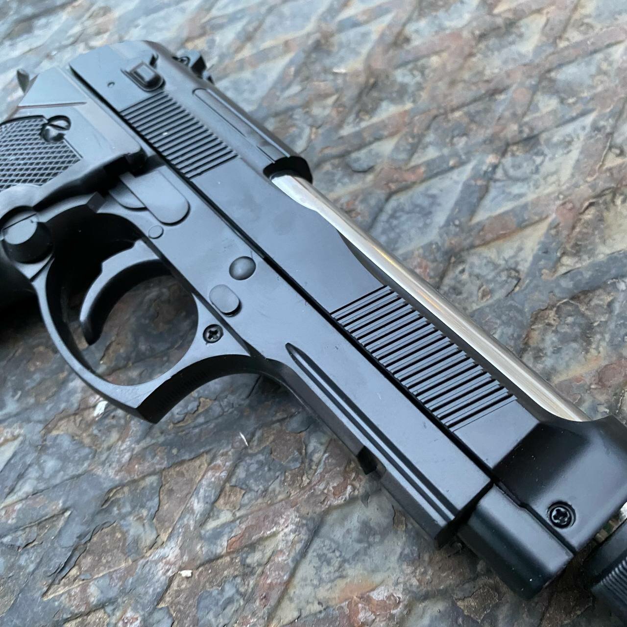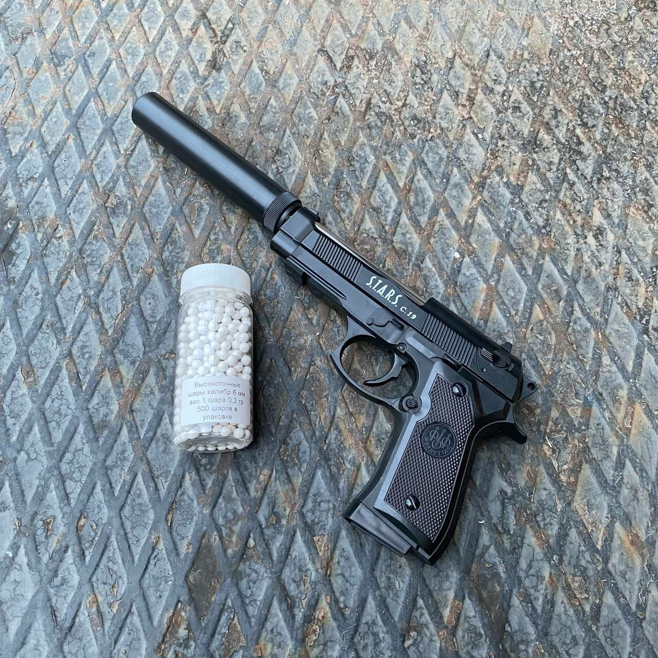 Тяжелый игрушечный пистолете с глушителем Beretta (Беретта) в комплекте с 500 пластиковыми пульками 6 мм интересное: