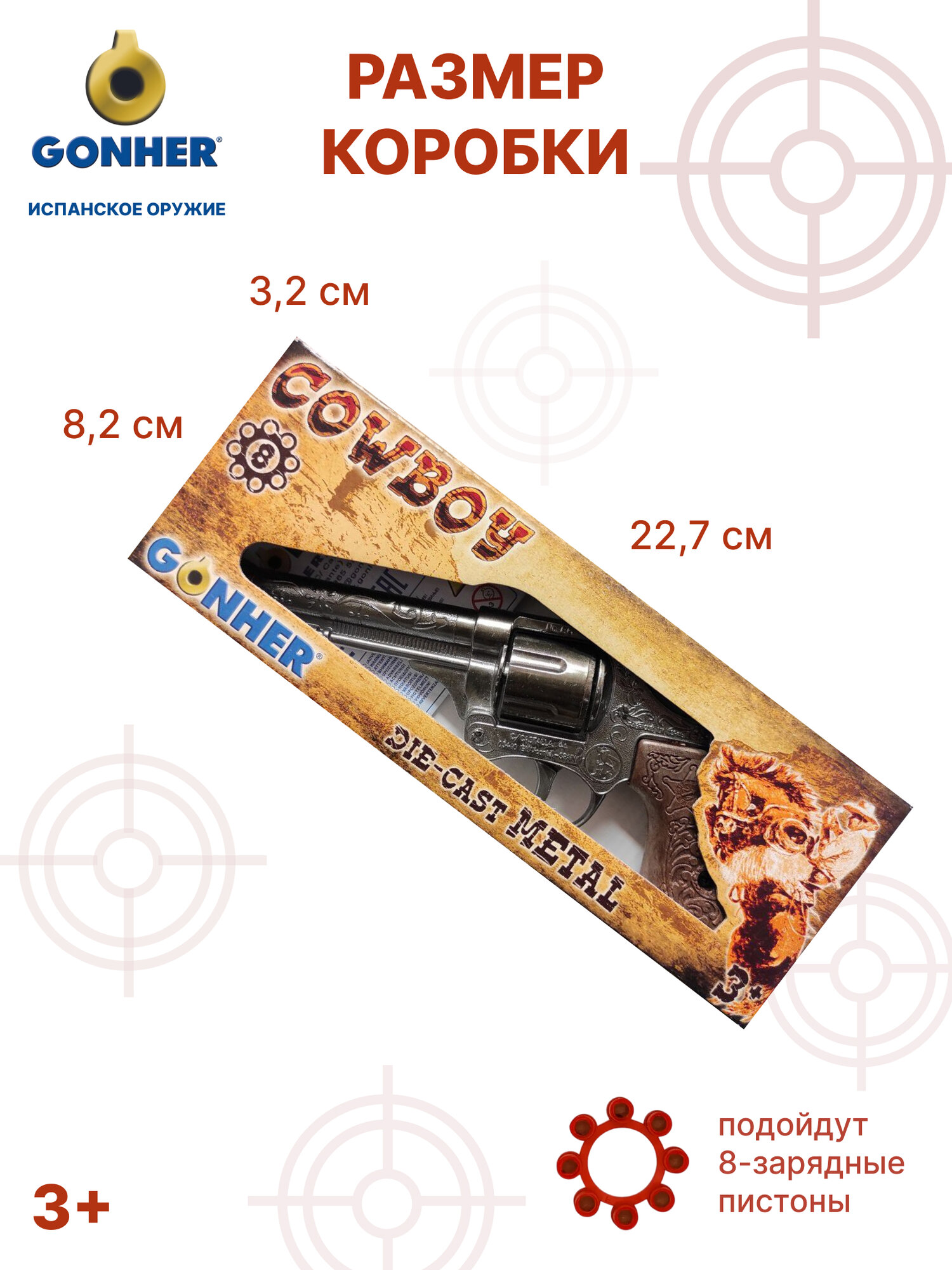 Игрушечный ковбойский пистолет Gonher 80/0, металлическое оружие, 8 пистонов интересное: