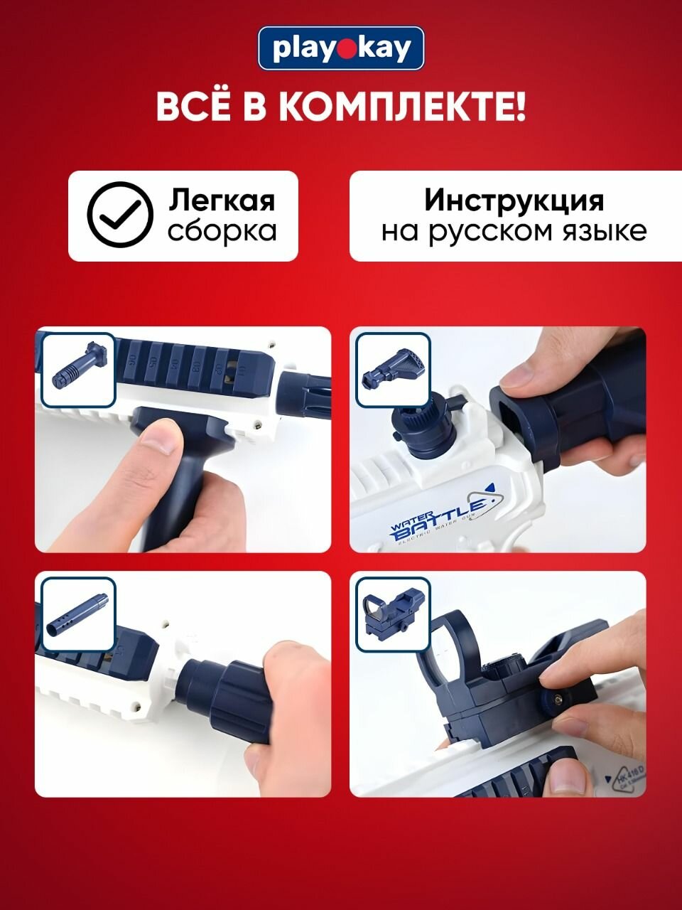 Водный пистолет playokay электрический, водяной автомат, дальность до 9 метров, с прицелом