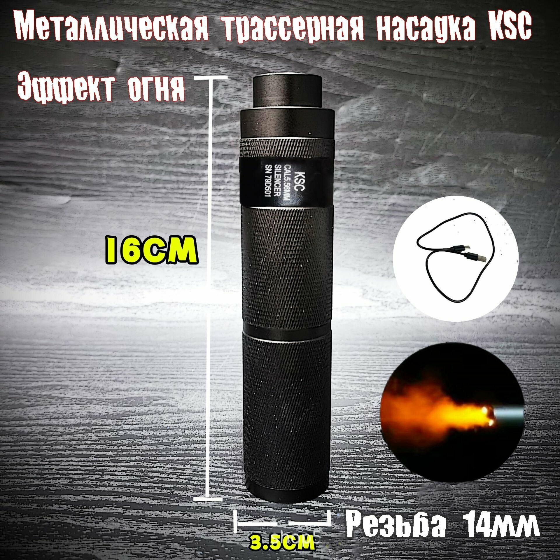 СохранитьМеталлическая Насадка KSC с имитацией пламени 14мм, USB, на гидробольное оружие Орбиган, 16см, Черный интересное: