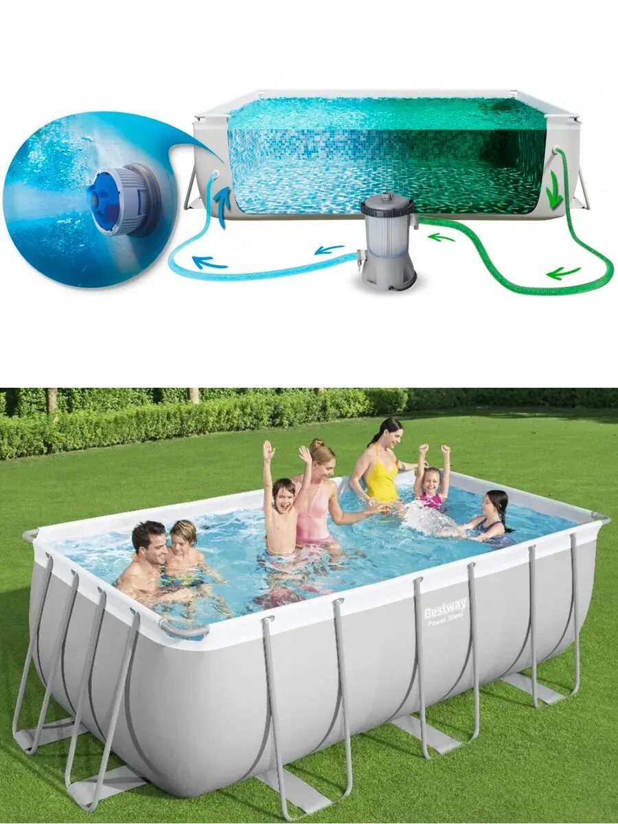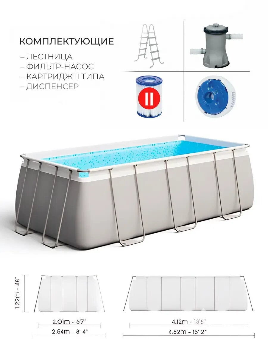 Бассейн 412х201х122 см с фильтром и лестницей 56456 интересное: