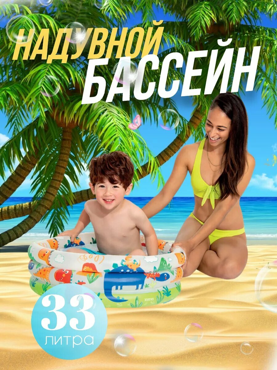 Купить Бассейн надувной детский круглый с динозаврами, 61х22 см, 1+, 33 л