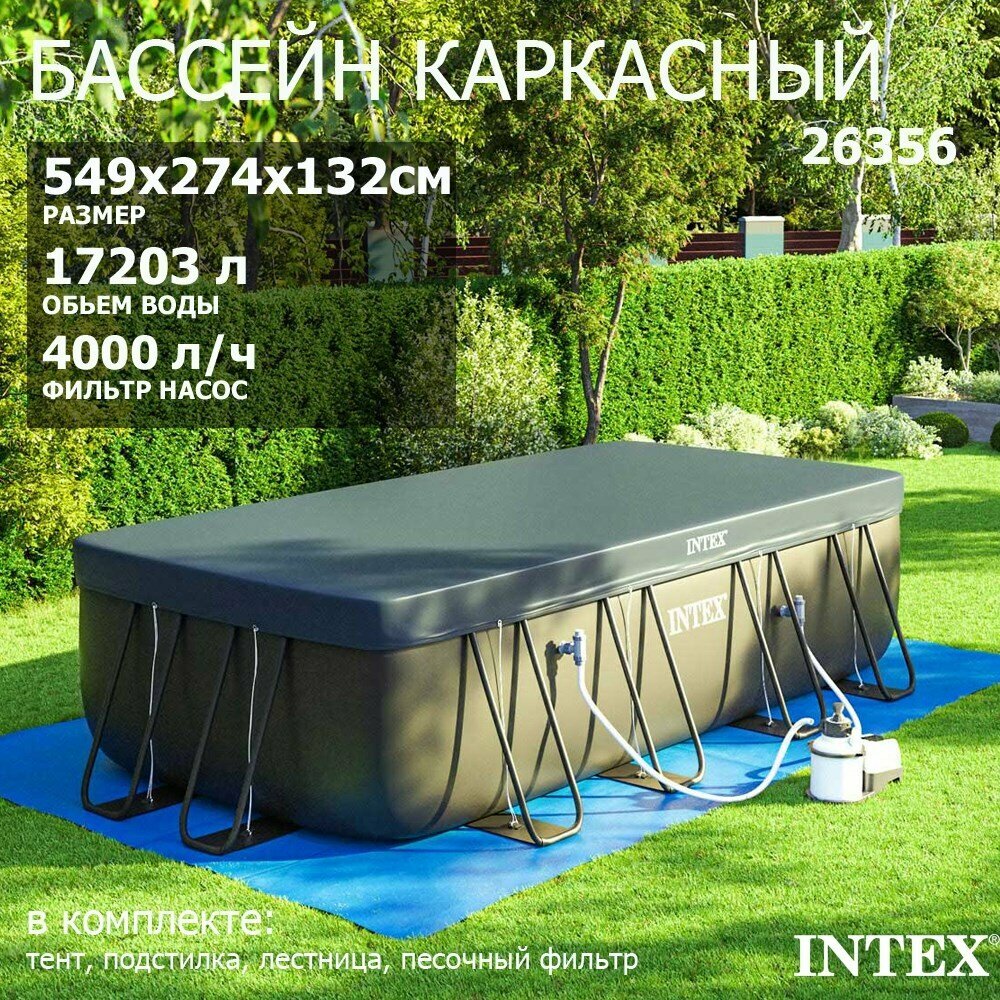 Intex 26356 / Каркасный бассейн / 549х274х132см / Ultra XTR Rectangular Frame + песочный насос, лестница, тент, подстилка интересное: