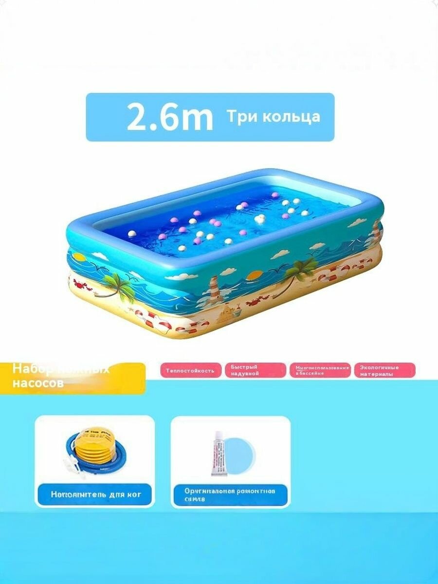 Бассейн надувной для детей Sibei Square, голубой, 300х183х30 см интересное: