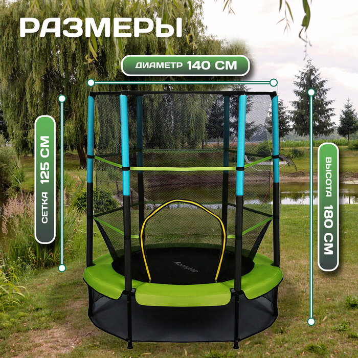 Батут ONLYTOP, d=140 см, высота сетки 125 см, цвет зелёный, 5392836 интересное: