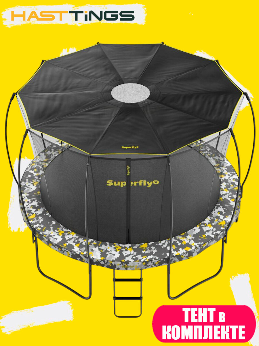 СохранитьБатут с тентом-крышей Hasttings Superfly X 366 см (12ft) / детский уличный / каркасный с лестницей интересное: