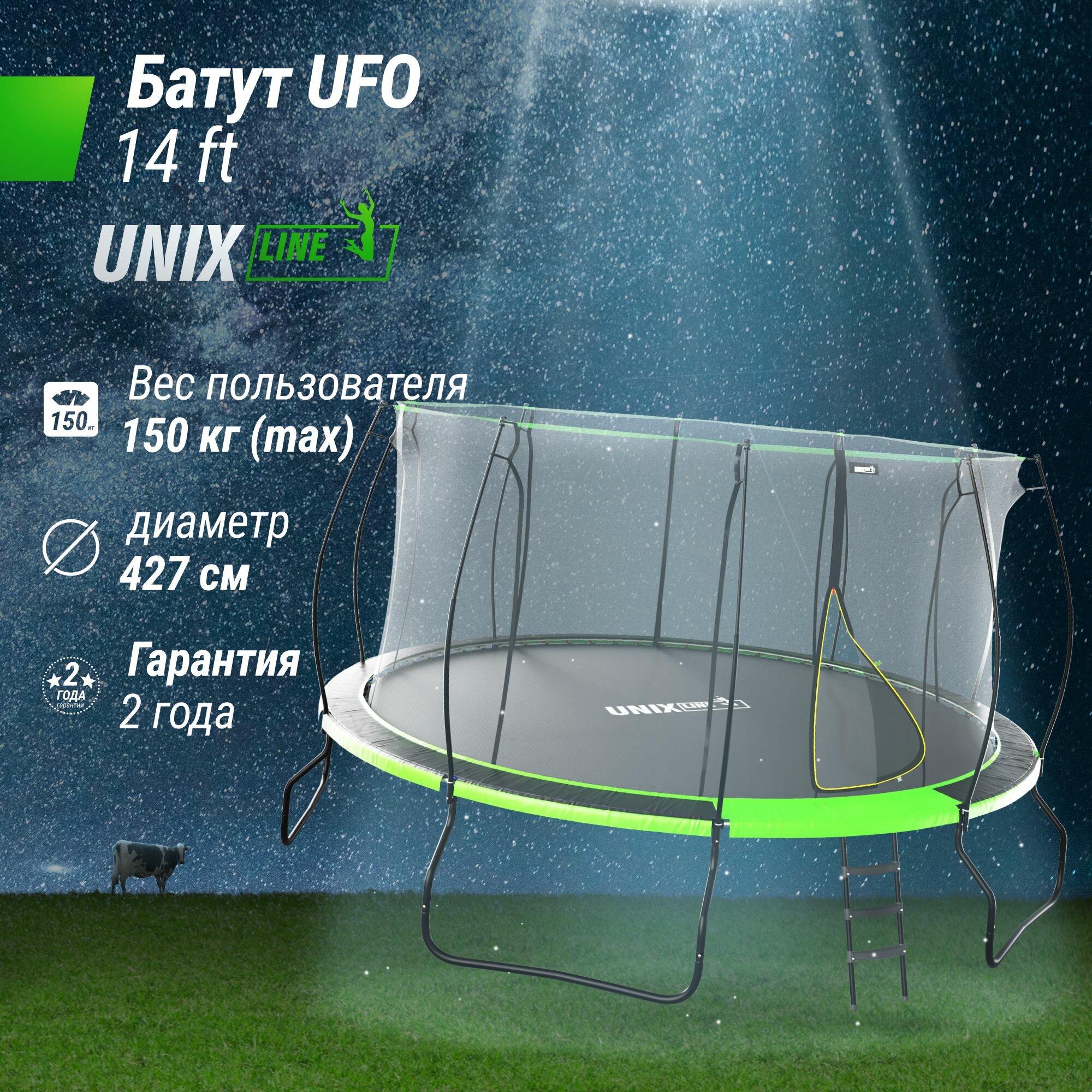 Батут UNIX Line 14 ft UFO Green + набор аксессуаров интересное: