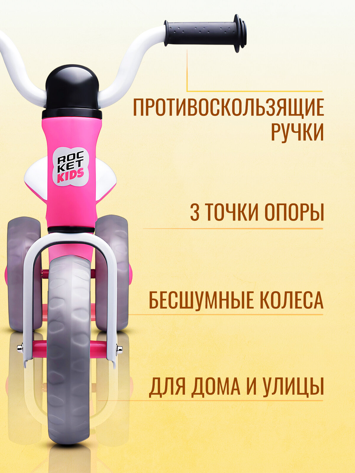 Беговел трехколесный Rocket 133-PK, колеса EVA, цвет розовый для детей от 1,5 до 3 лет. интересное: