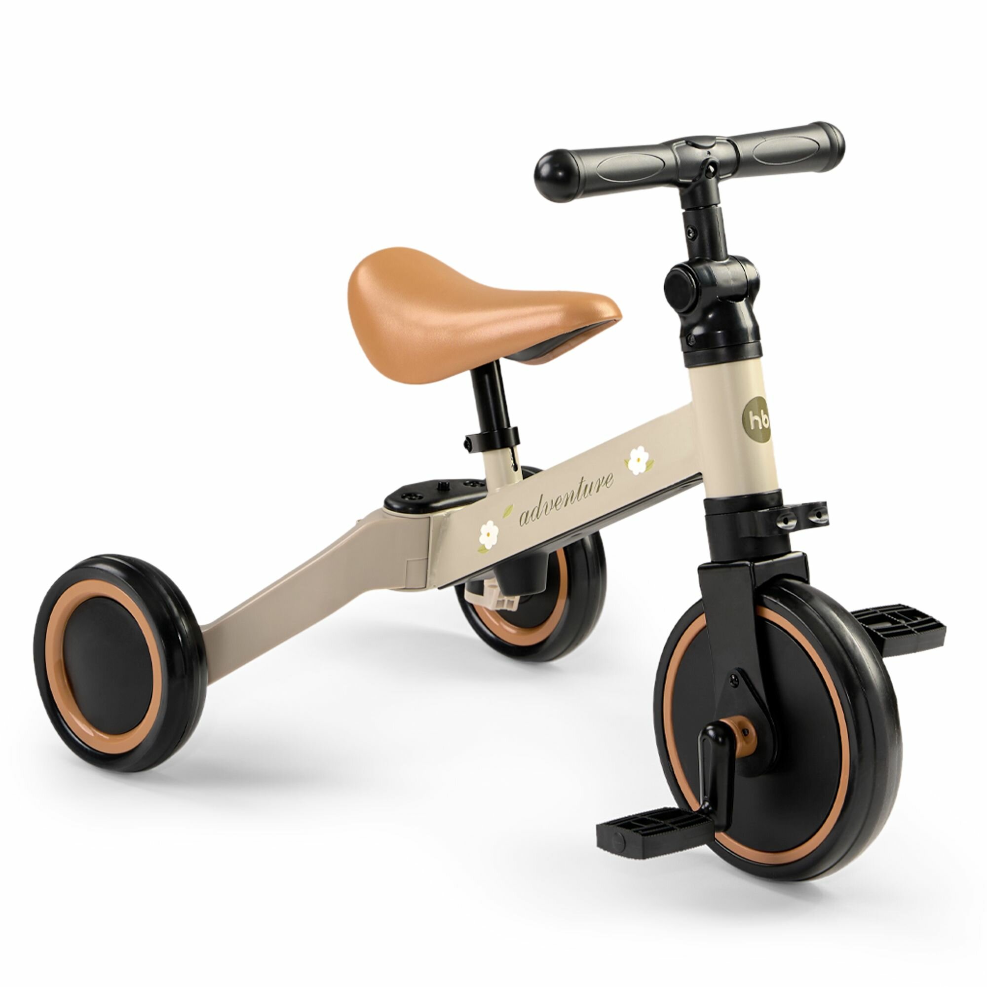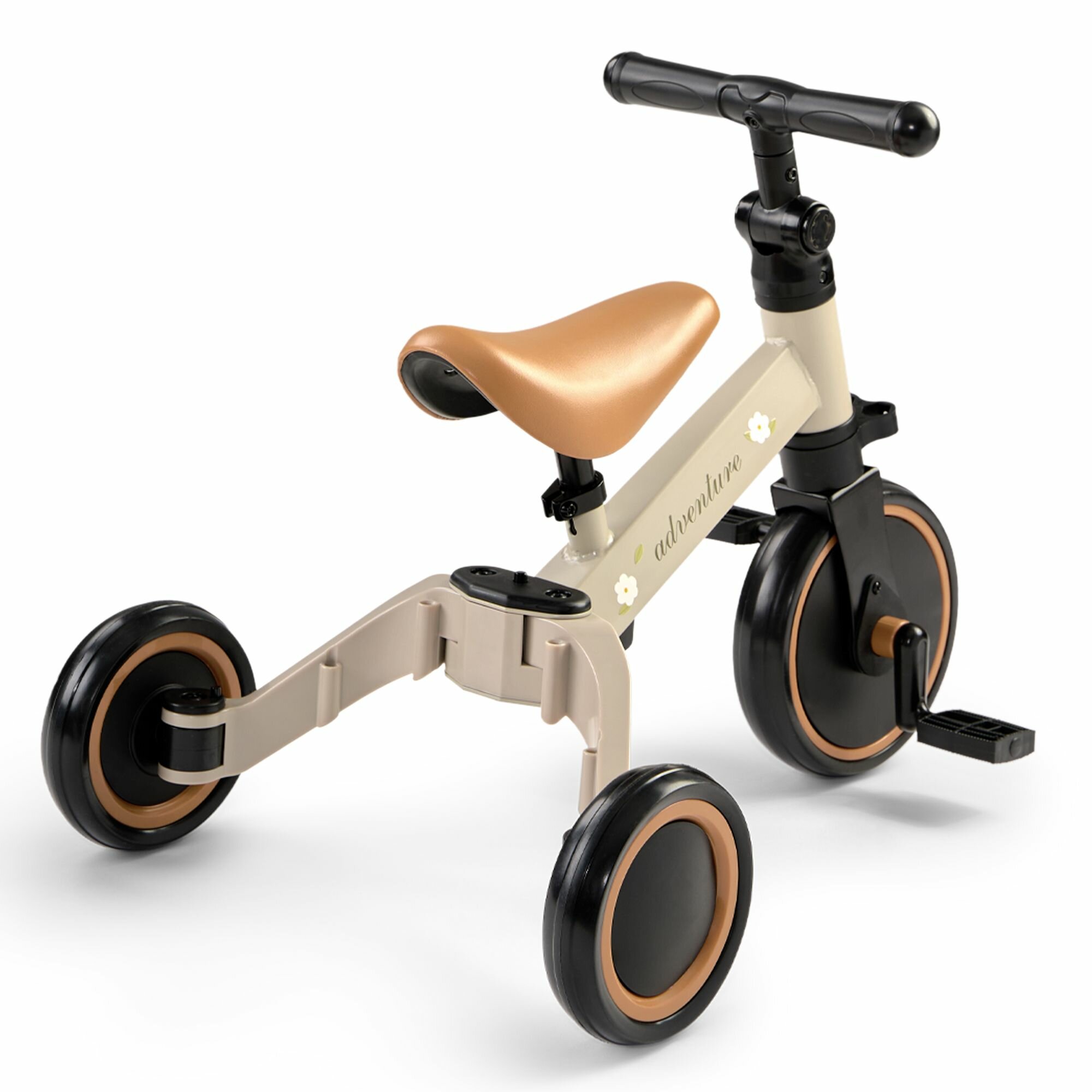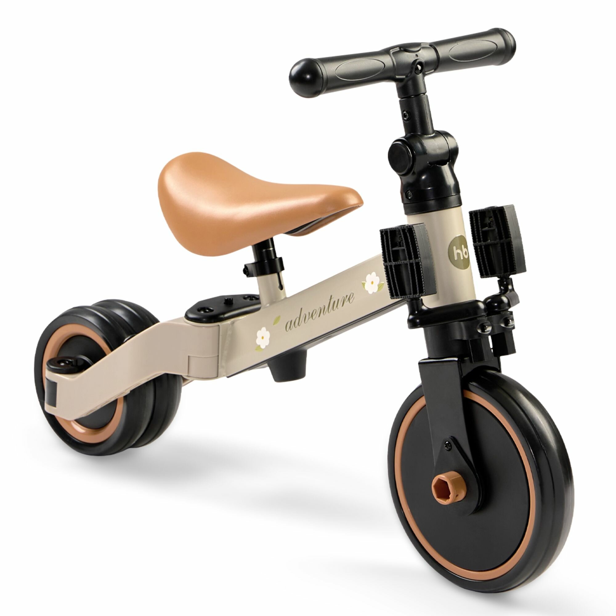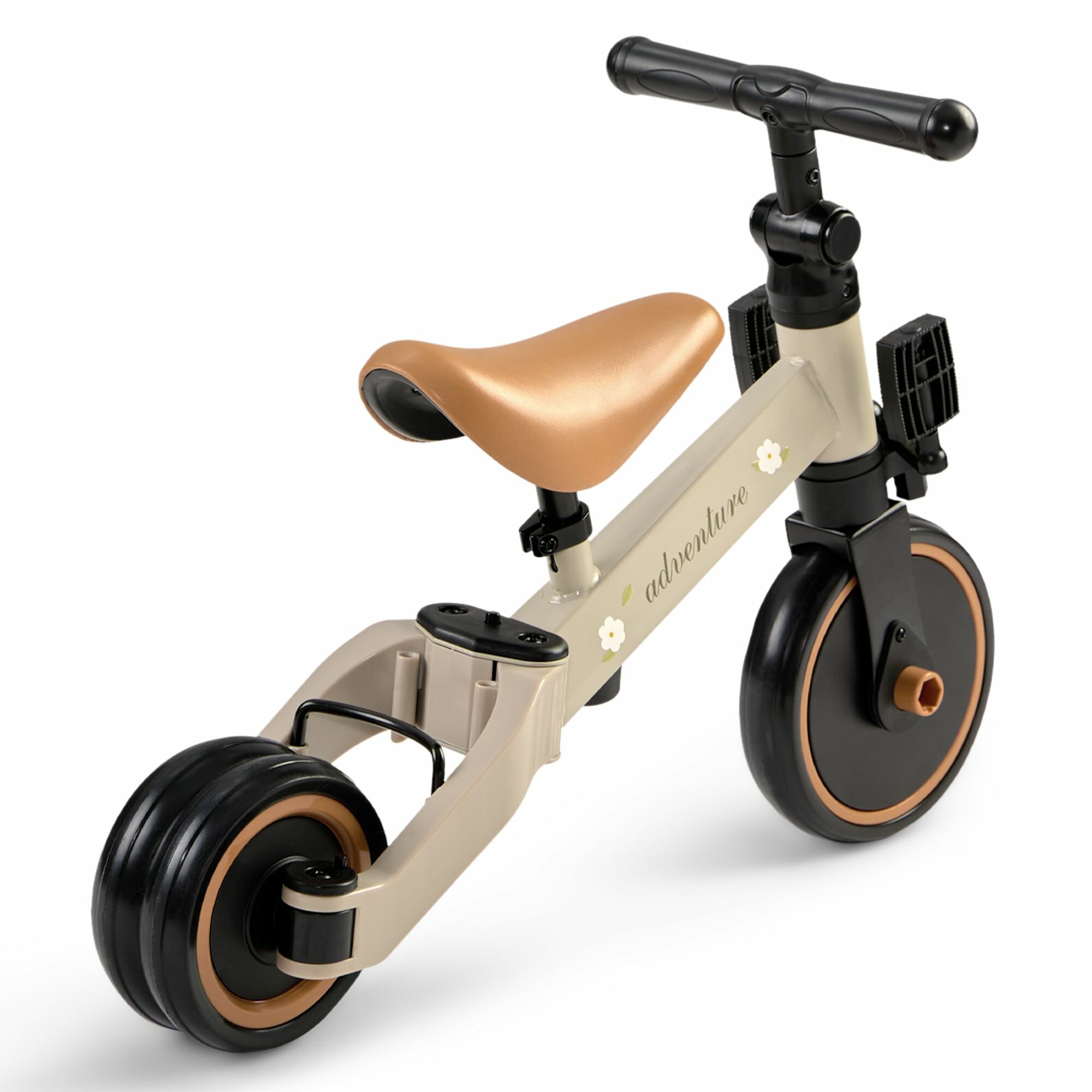 Купить 50026, Беговел детский от 1 ADVENTURE, трансформер двухколёсный-трехколесный велосипед, 3в1, серо-зеленый с цветами